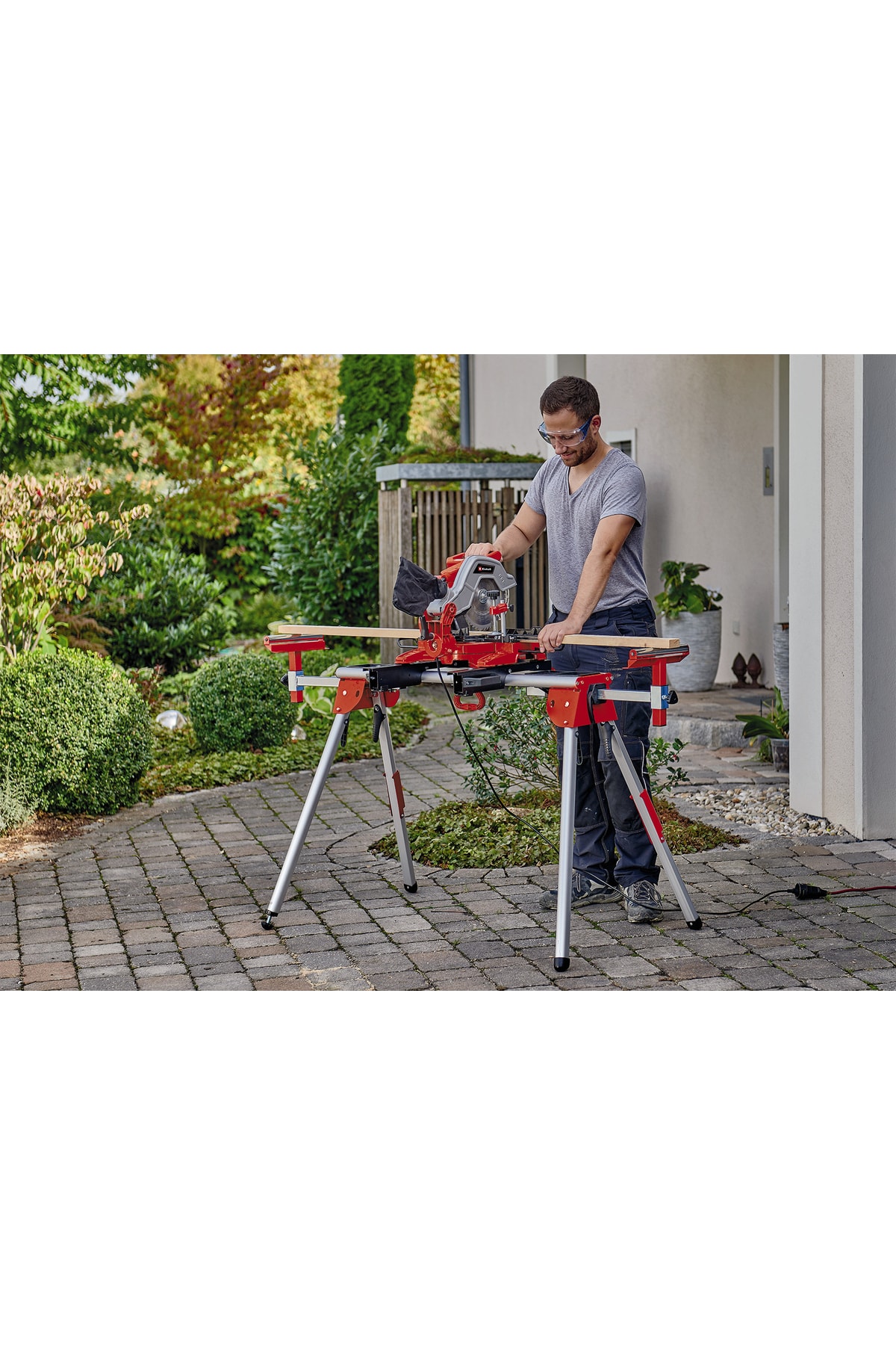 Einhell TC-MS 216 Gönye Testere, ahşap, lamine paneller ve plastik iş parçalarında enine ve gönye kesimler gibi işler için profesyonel kalitede karbür bıçağı ile donatılmış bir üründür. Tek elle çeşitli konumlarda kilitlenebilen, dökme alüminyumdan yapılmış tam açı ayarlı, yüksek kaliteli tablası vardır. Çalışma pozisyonunda kolayca okunabilecek, iş parçasının genişliğini gösteren bir skala ile donatılmıştır. İş parçası her iki taraftan da desteklenir. Güvenli bir sıkma tertibatı kesin çalışmayı garanti ederken, kesme derinliği kontrol aracı zorlu işlerde kolaylık sağlar. Mil kilidi ile kolayca değiştirilebilen karbür testere bıçağı 200 m'den fazla kesme kapasitesine sahiptir. Güvenli taşıma için taşıma kilidi ve çalışma alanını temiz tutmak için toz torbası dahildir.