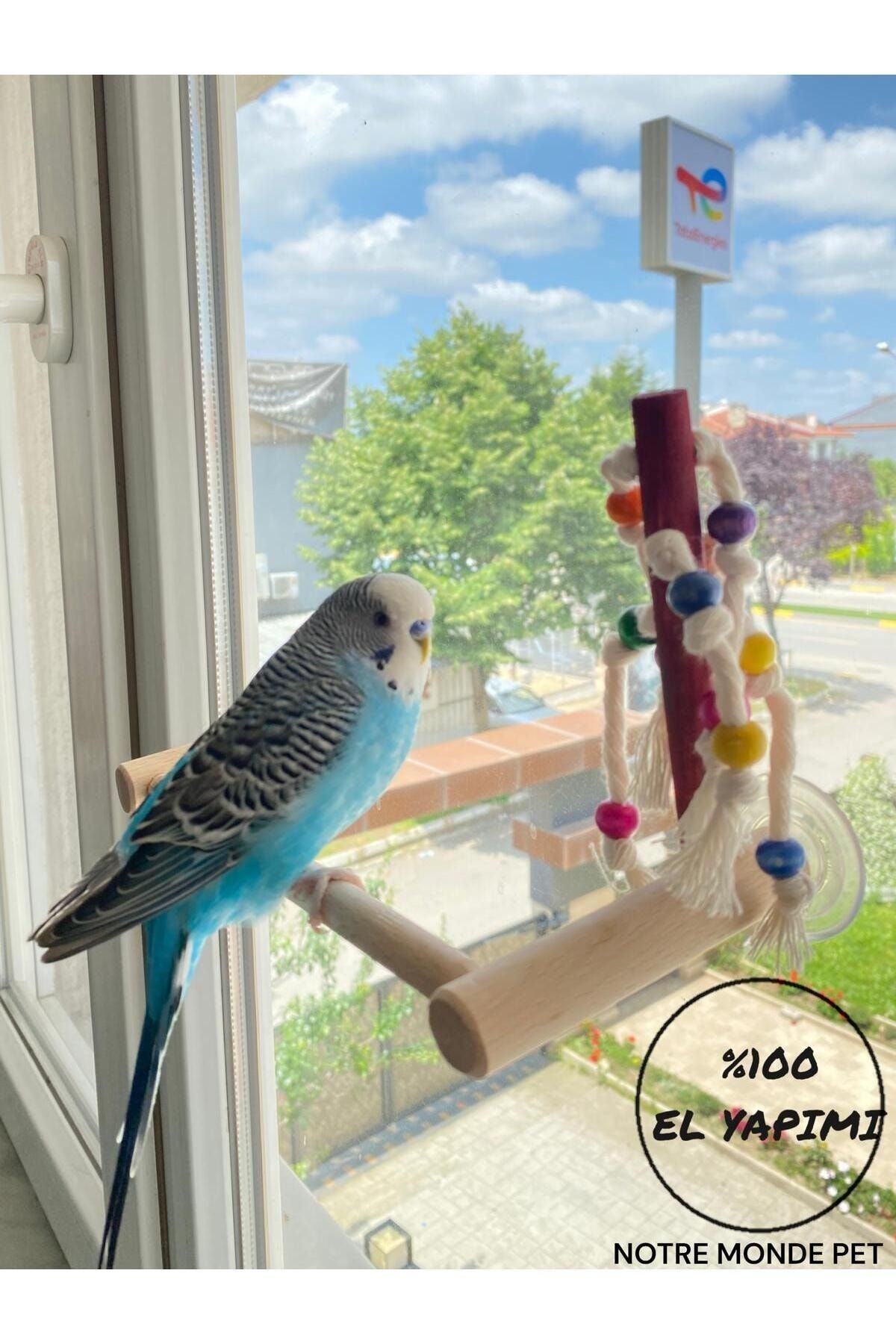 Cam vantuzlu kuş tüneği stres ipli oyuncaklı not:vantuzu ıslatıp cama yapıştırınız ıslanmayan vantuz düşme yapar
