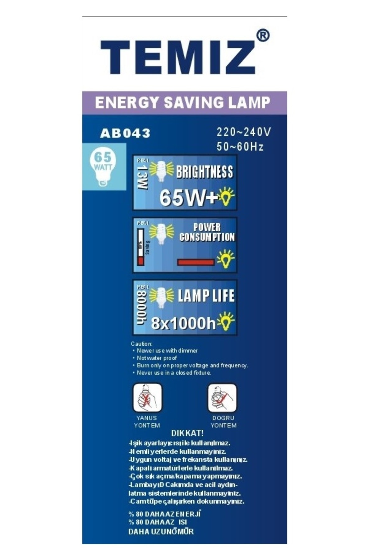 Enerji verimliliği yüksek, 13 watt gücünde tasarruflu ampul ile elektrik faturalarınızda gözle görülür tasarruf sağlar