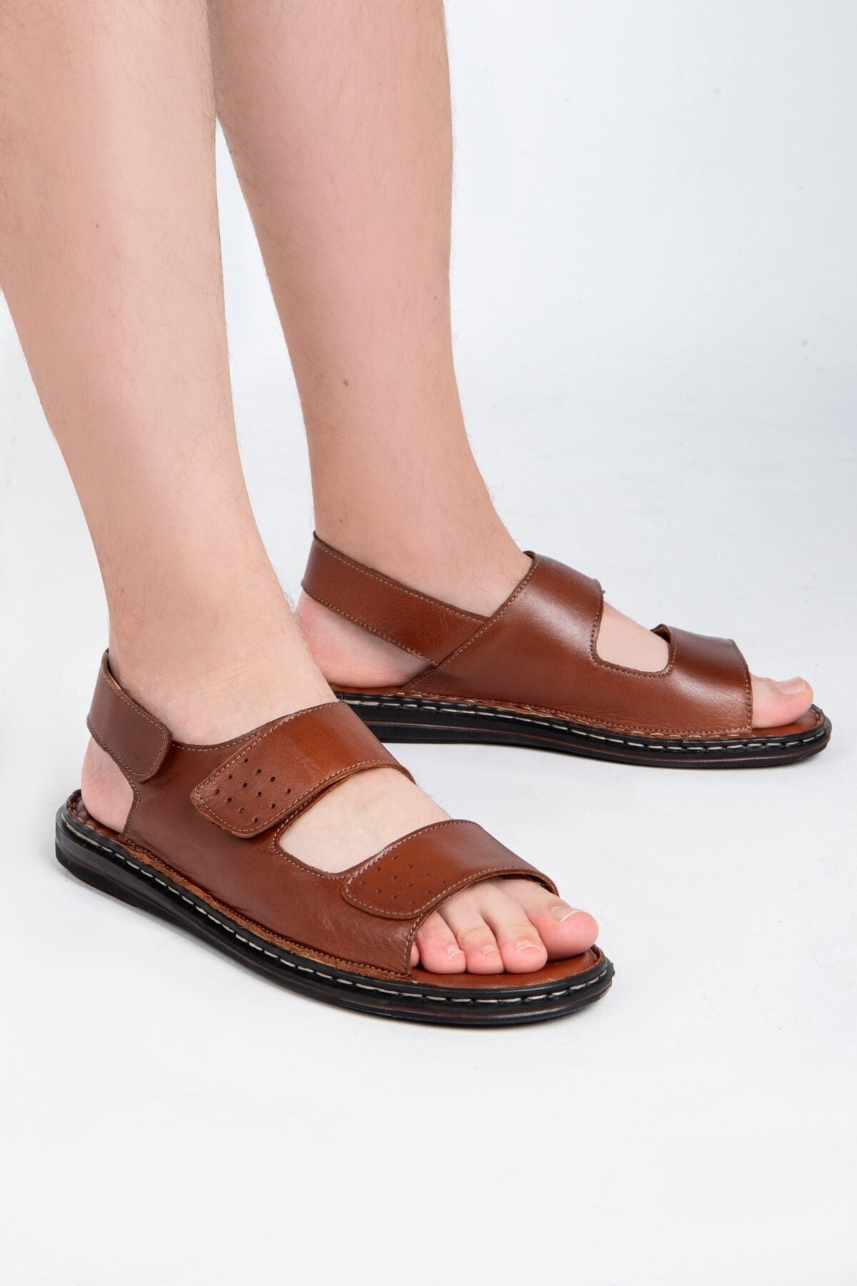 Ducavelli Luas Hakiki Deri Erkek Sandalet, Hakiki Deri Sandalet, Ortopedik Taban Sandalet, Kauçuk Taban Terlik