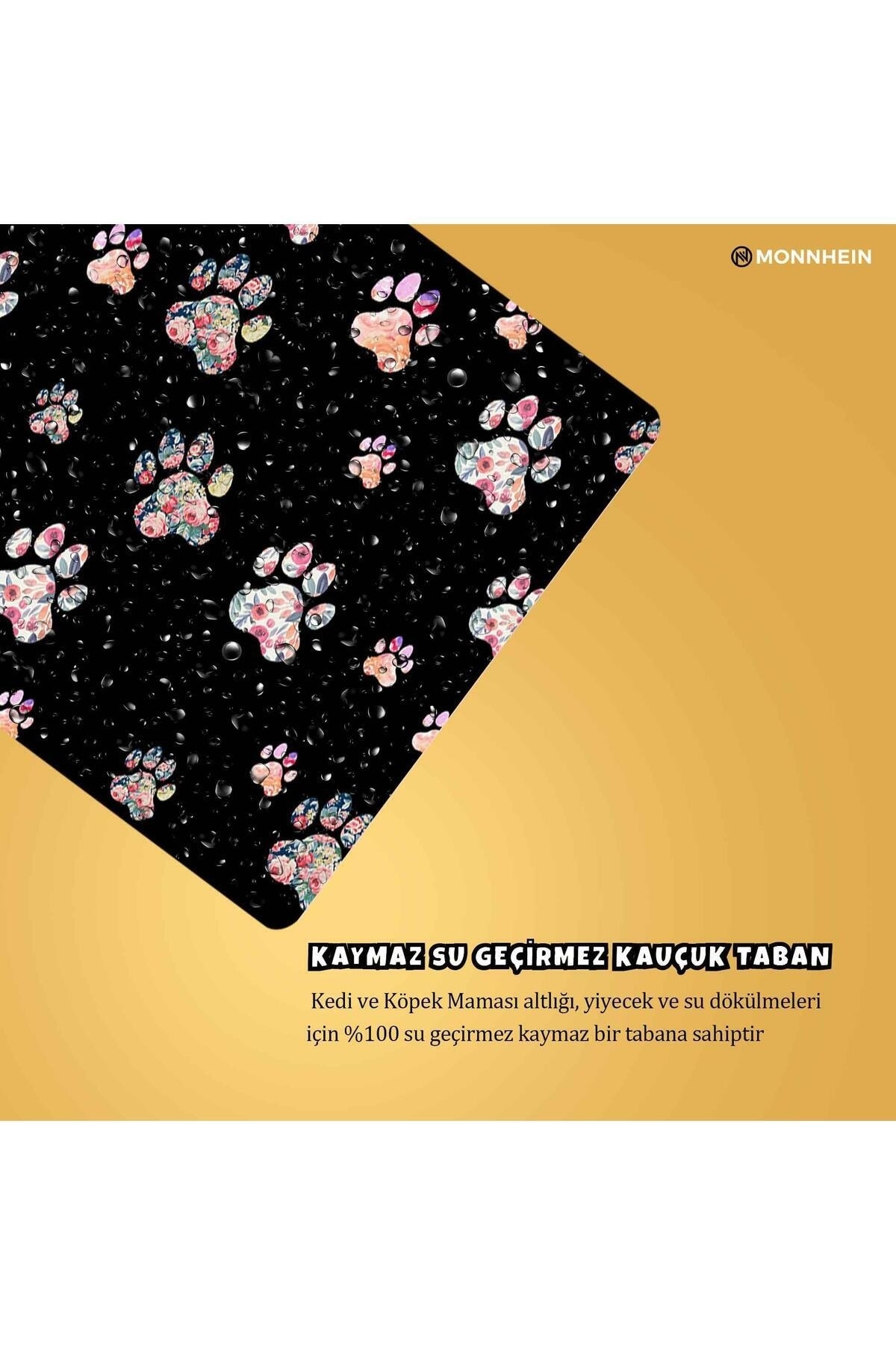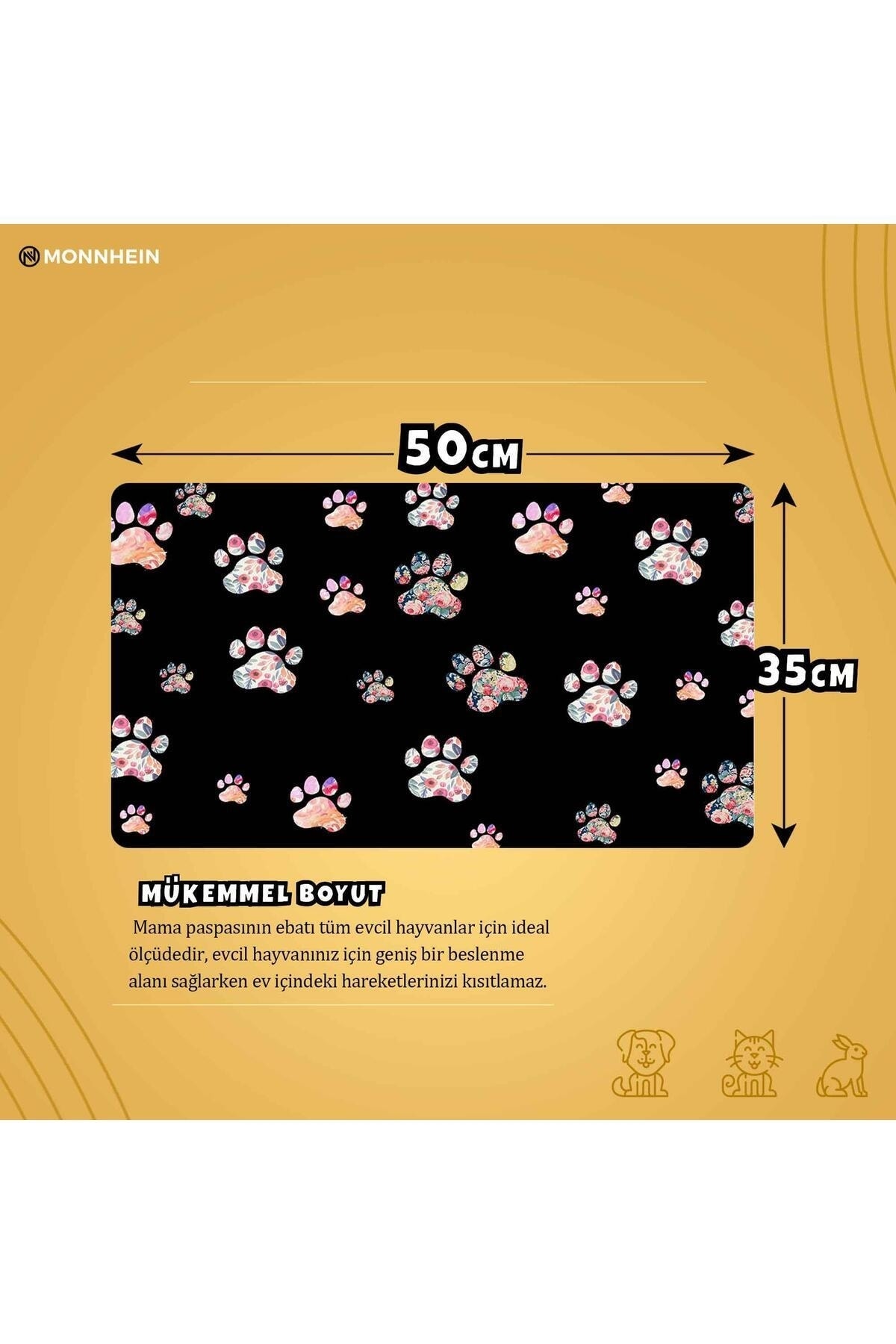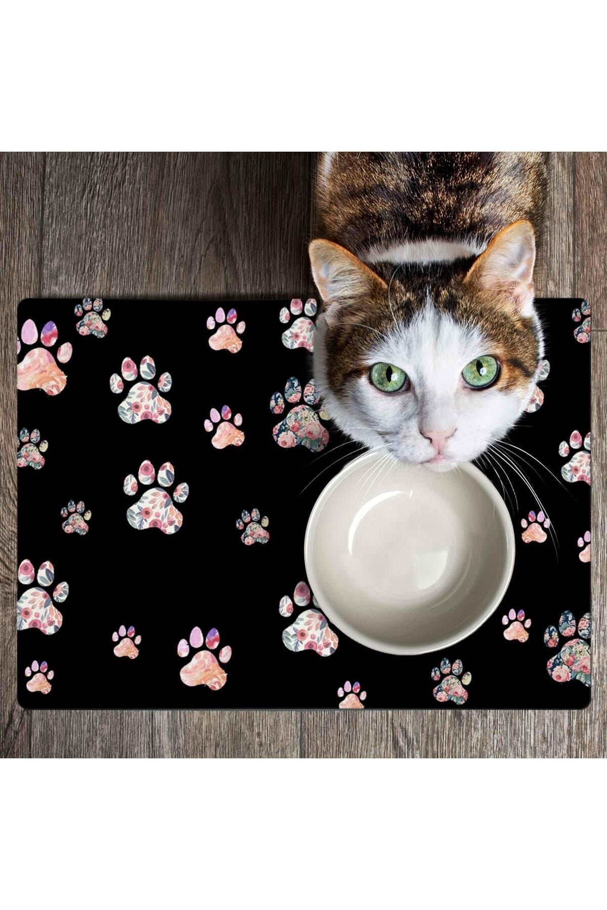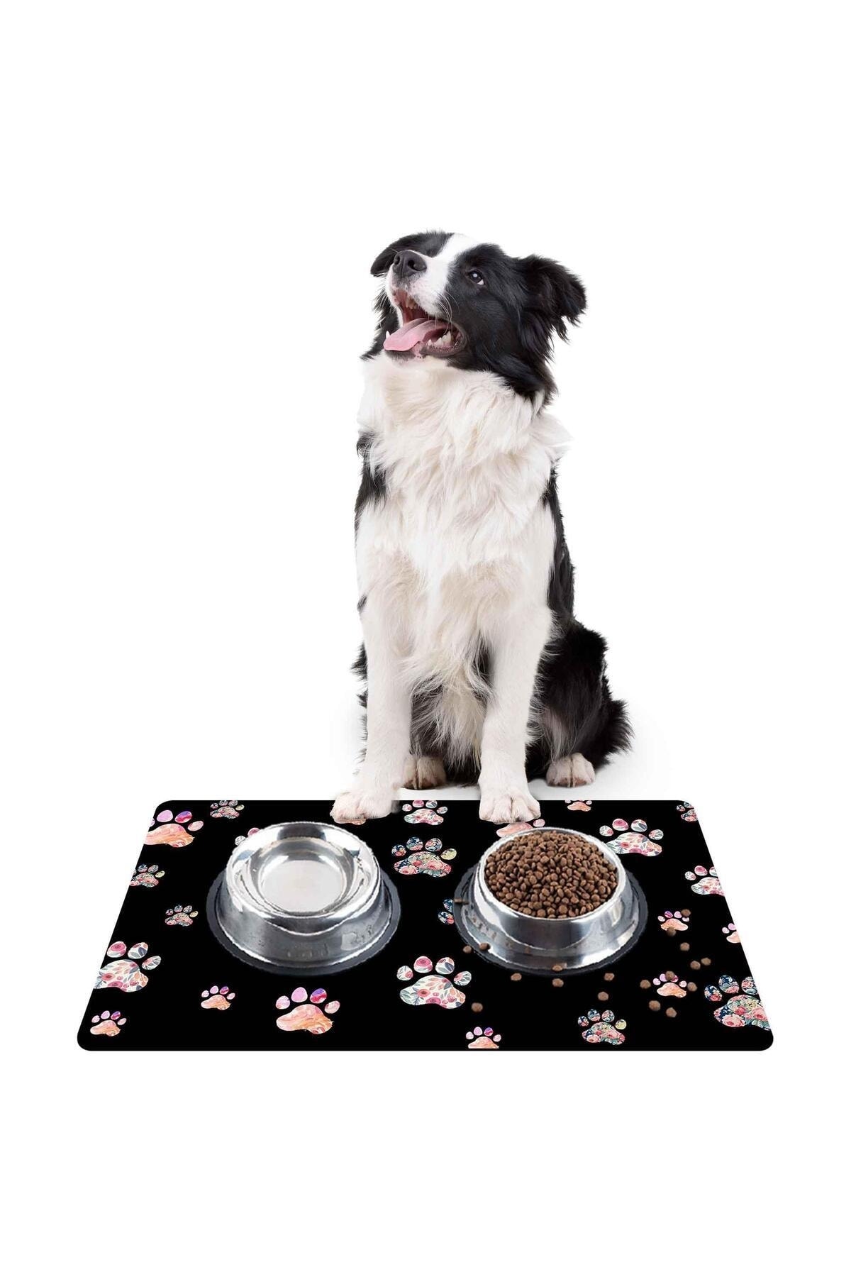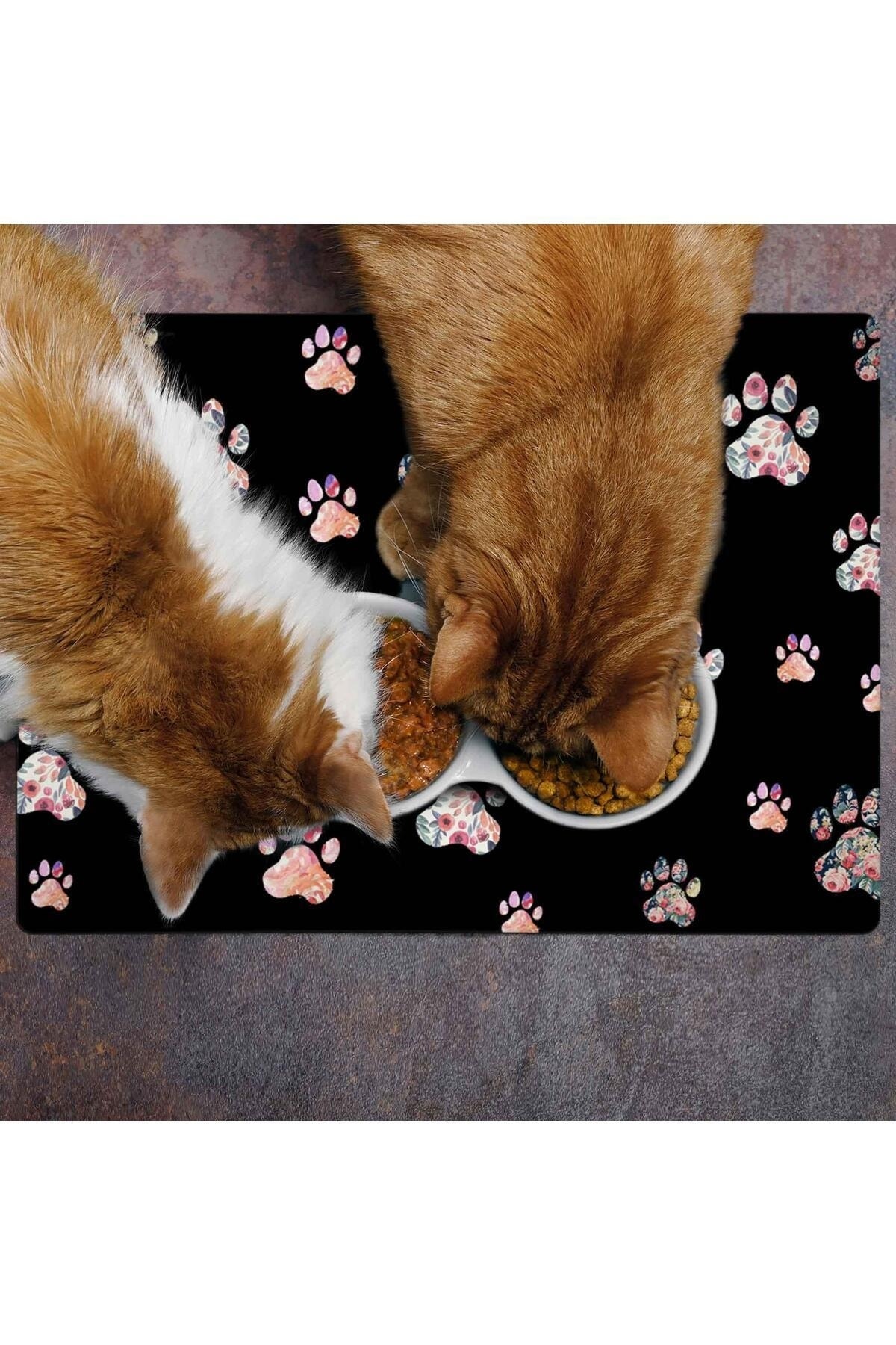 Mama Ve Su Evcil Hayvan Beslenme Matı, Kolay Temizlenir, Su Geçirmez (50X35, SİYAH RENKLİ PATİ)