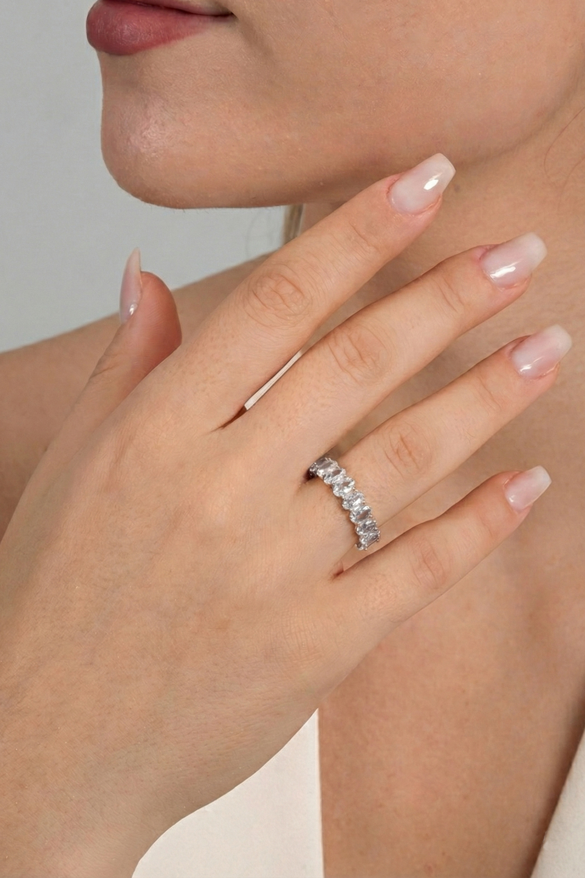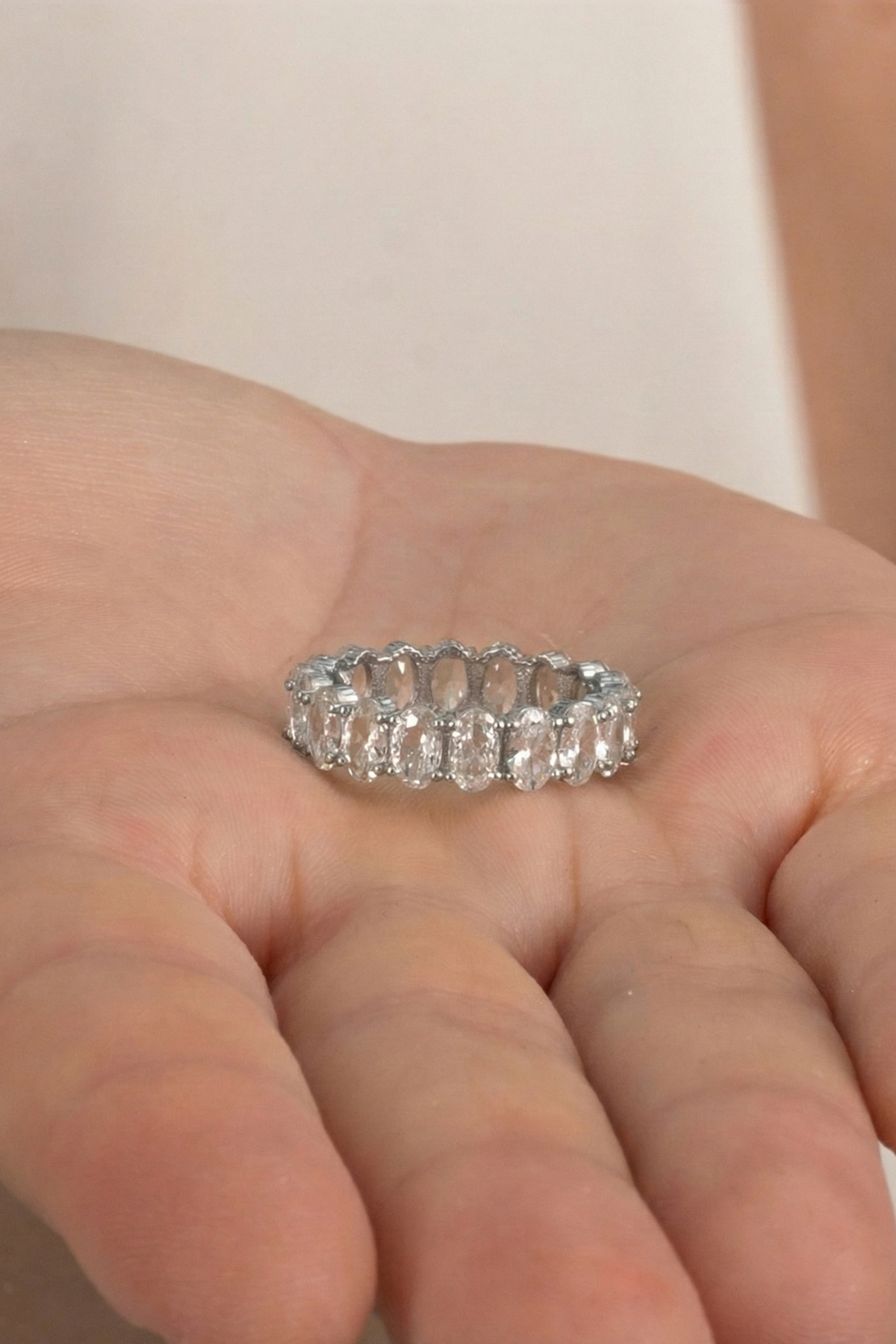 - Oval baget kesim zirkon taşlar, ışığı mükemmel bir şekilde yansıtarak parmağınızda göz kamaştırıcı bir etki yaratır