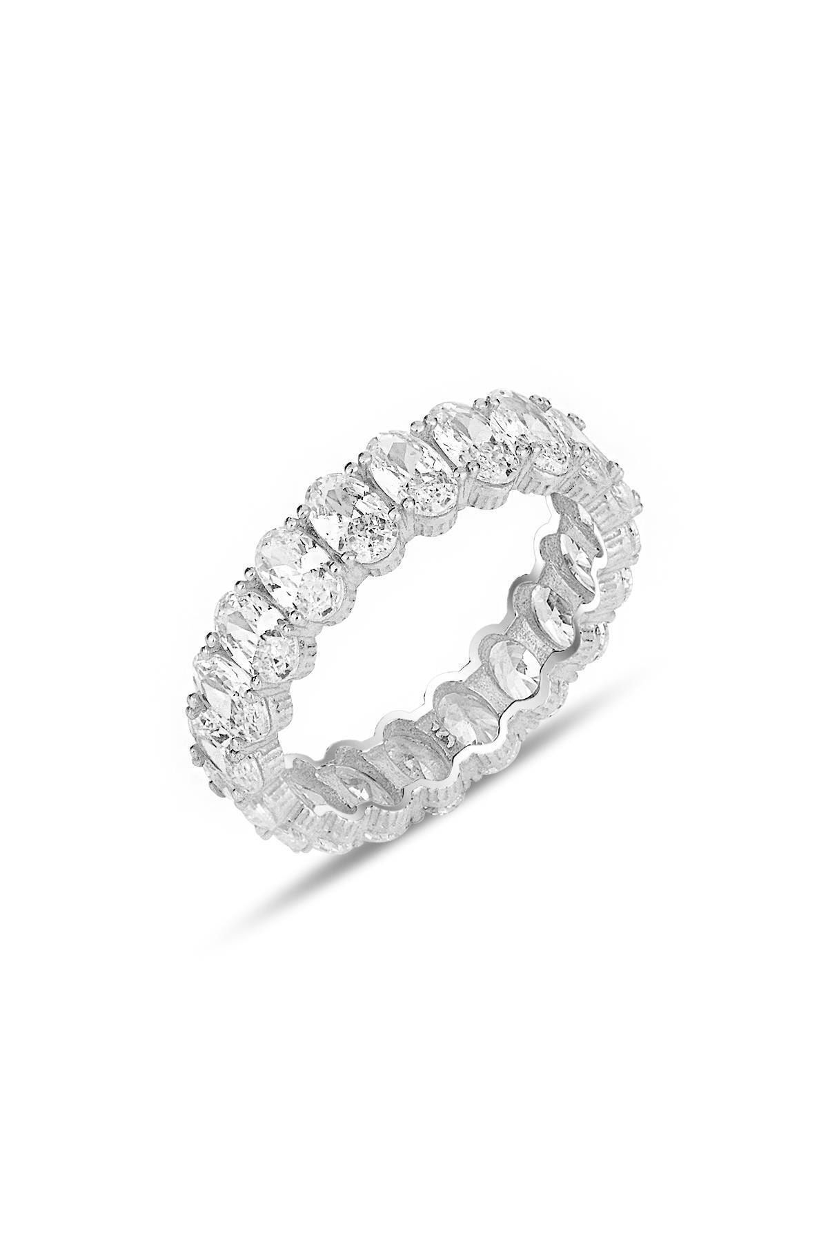 925 ayar gümüş özel tasarım rodyumlu oval baget kesim zirkon taşlı tamtur yüzük.