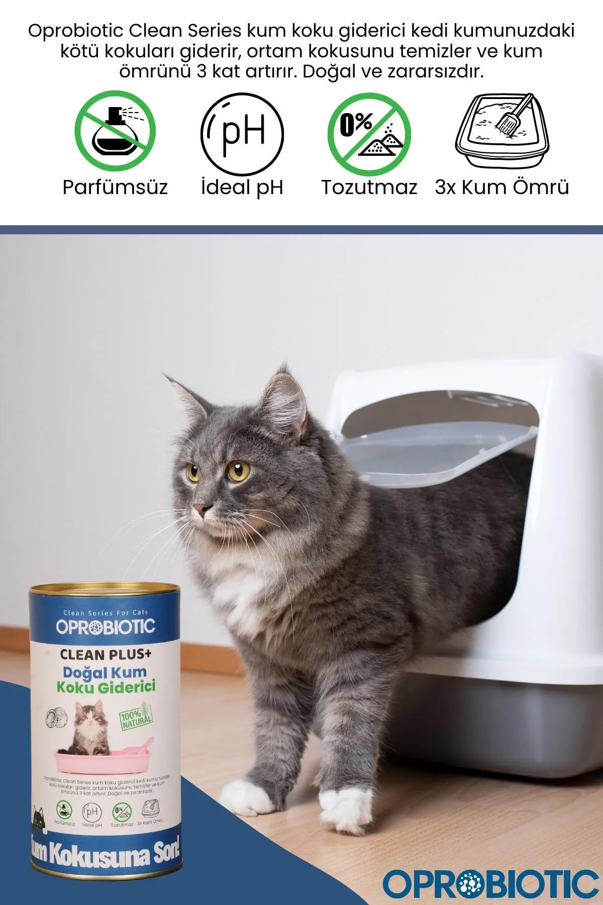 Oprobiotic clean series kedi kum koku gidericisi, kedi kumu ve ortamdaki kötü kokuyu moleküllerine hapsederek engeller. Buhar aktivasyonu ile, yüksek yoğunluklu, koku giderimi için özel olarak üretilmiştir. Üstün mekanik sertliği sayesinde tozsuz ve temiz bir kullanım sağlar. Kumun ömrünü 3 kat uzatır. 2 adet 450 gr ürün gönderilir. Özellikler
