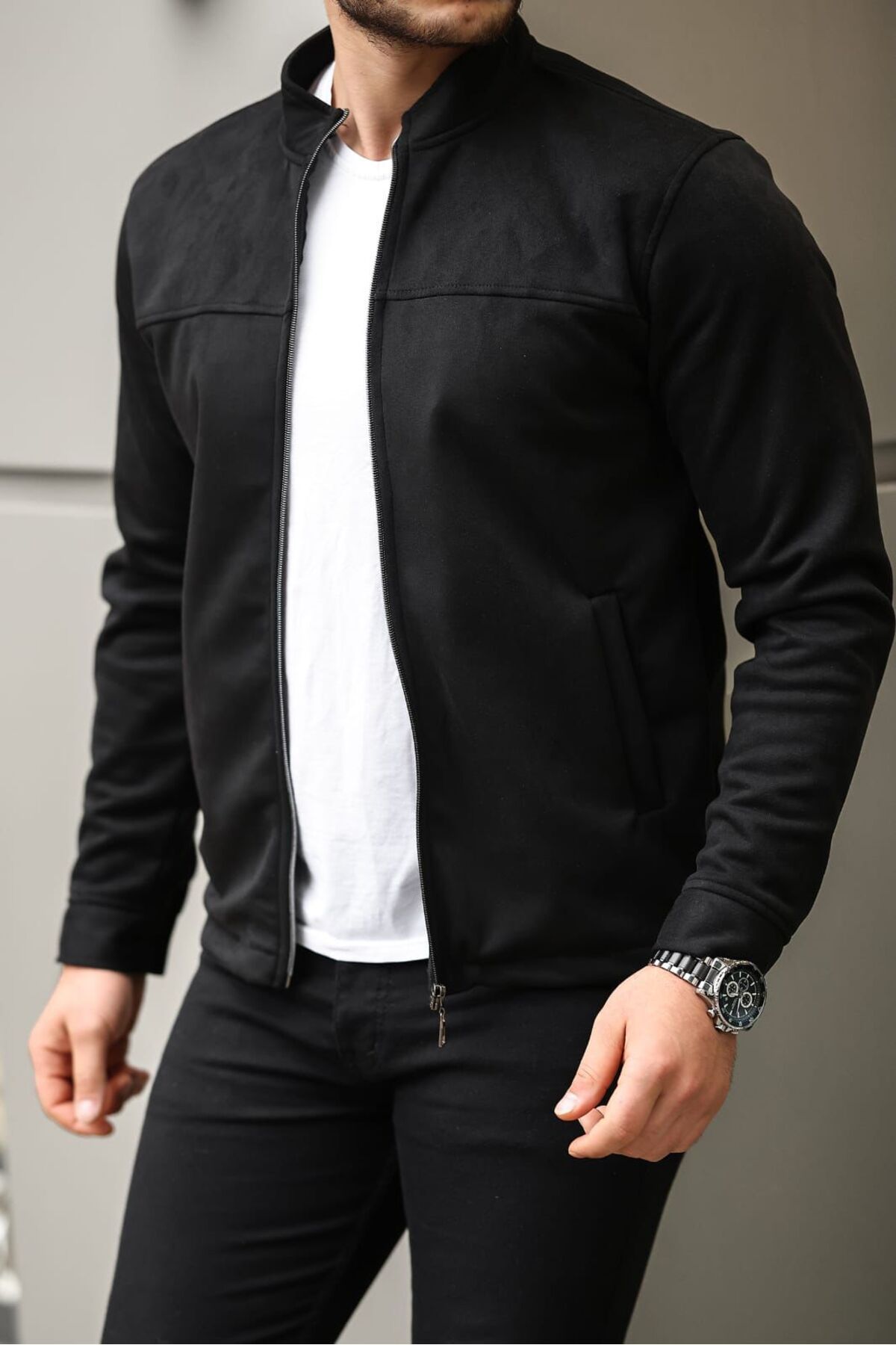 Her yaştan erkeğin günlük kullanımına uygun, siyah renkli süet ceket.