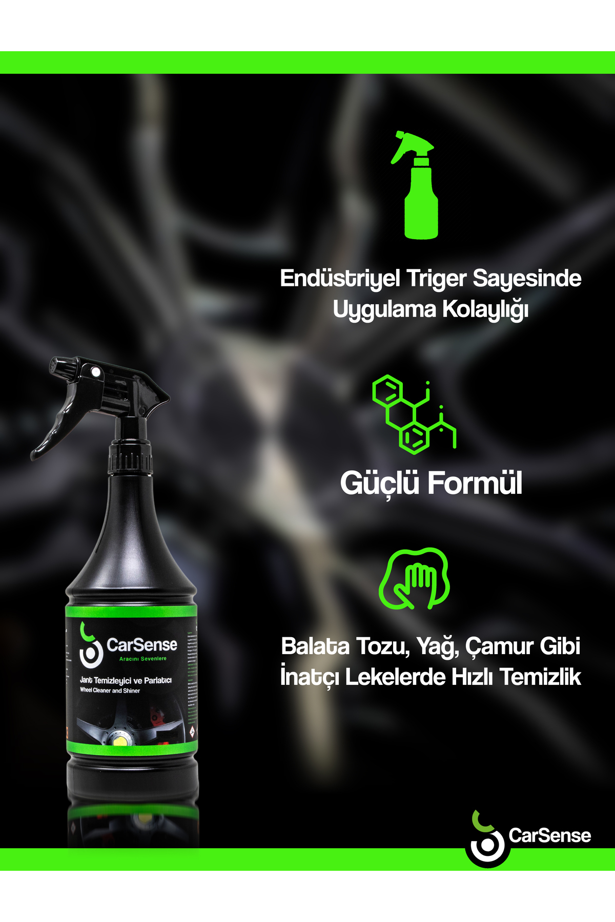 CarSense Jant Temizleyici ve Parlatıcı Tüm hafif alaşım ve çelik jantlar için uygundur.