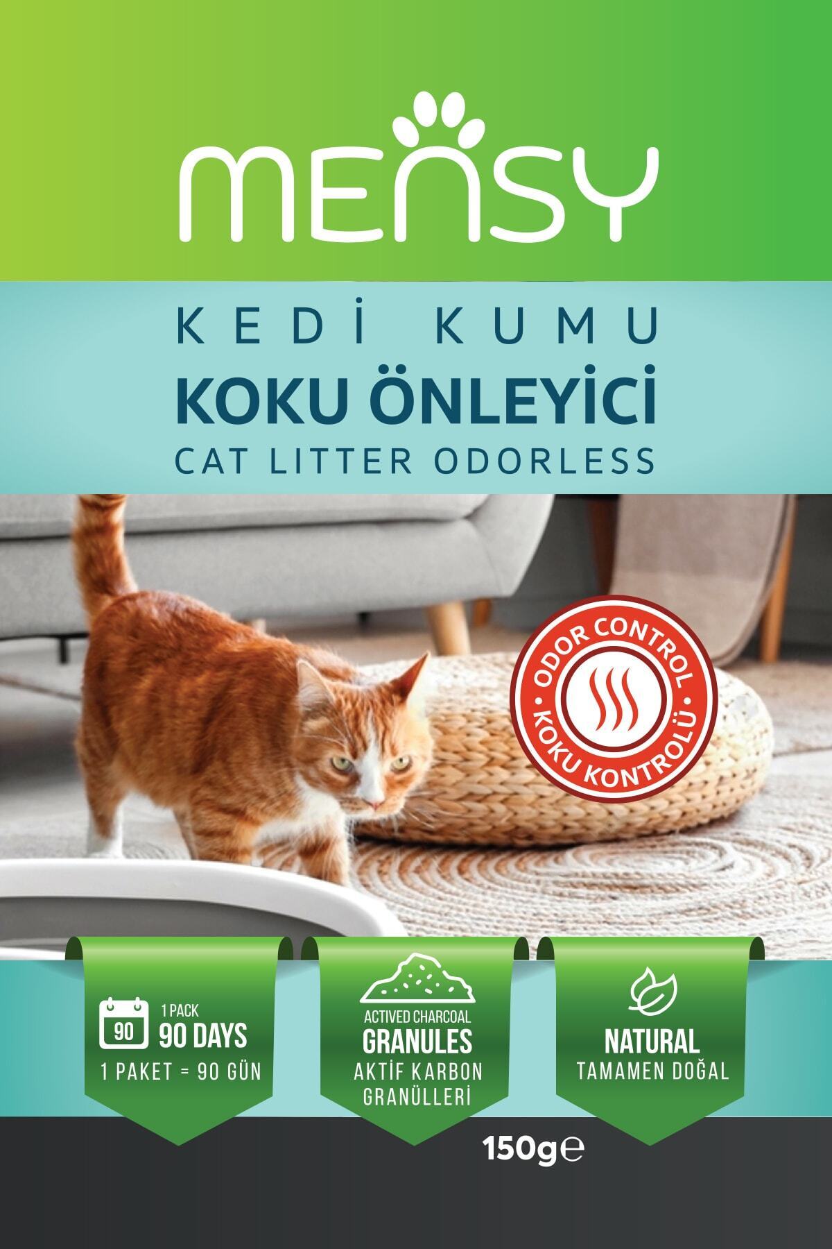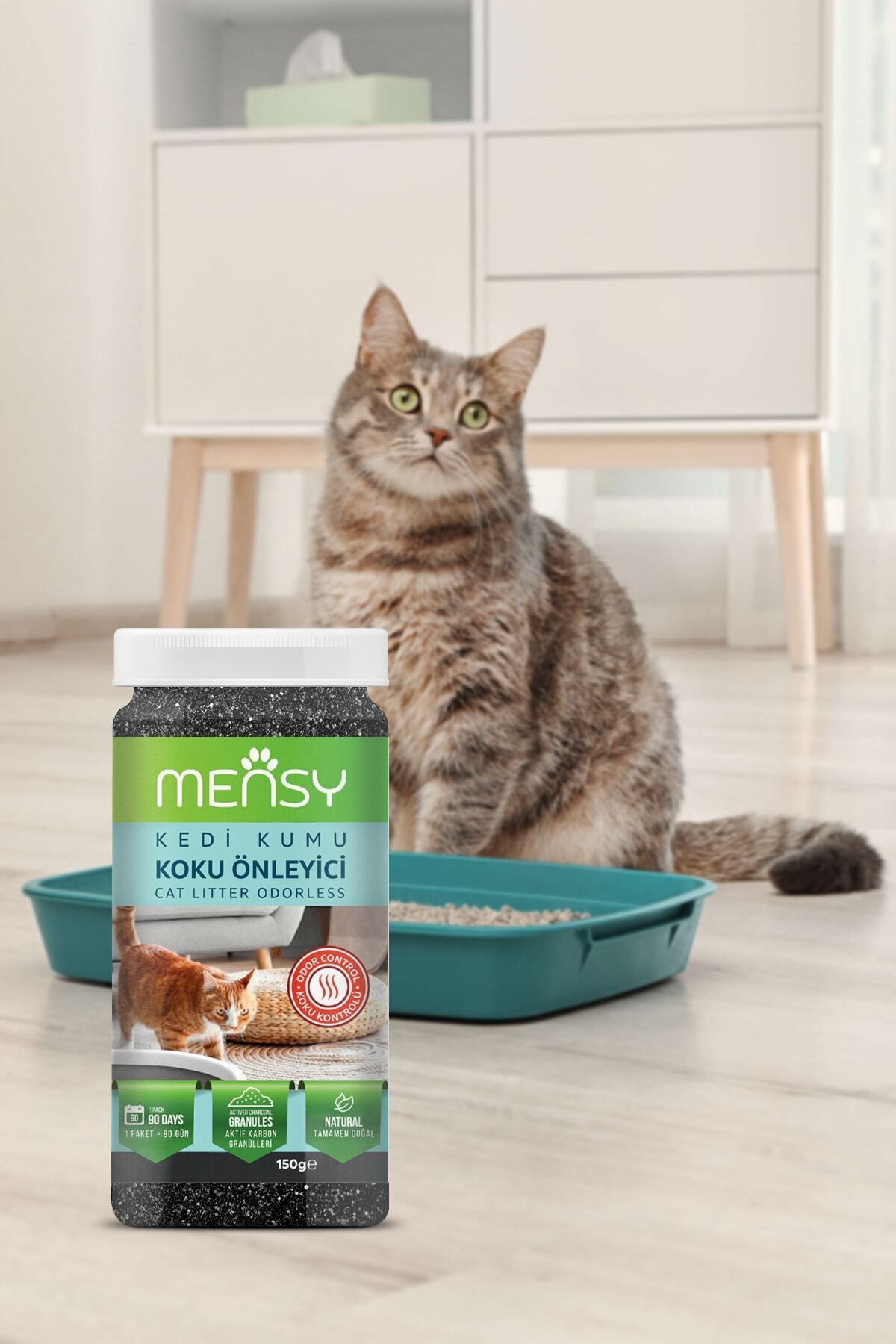 Mensy kedi kumu koku giderici, kedi kumlarında istenmeyen kokuların önlenmesini sağlar.