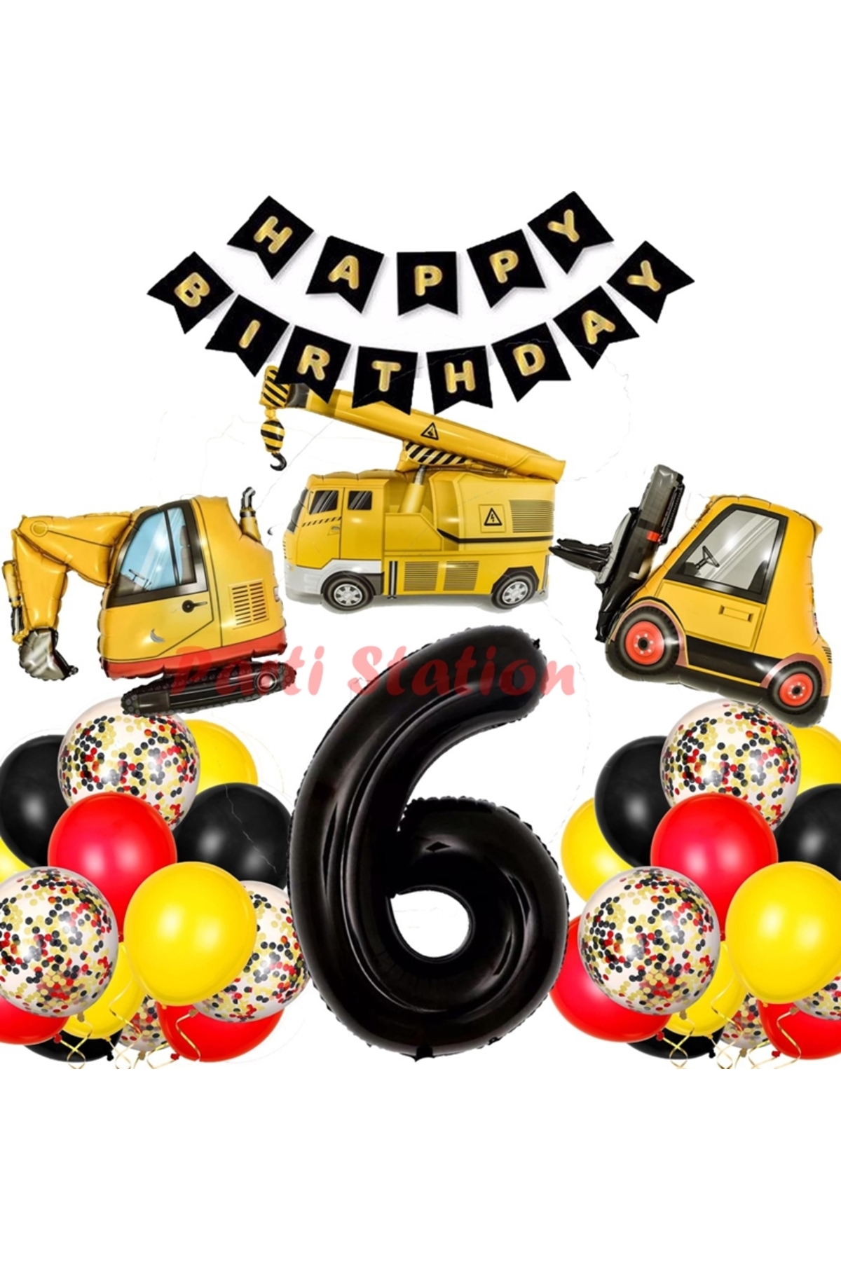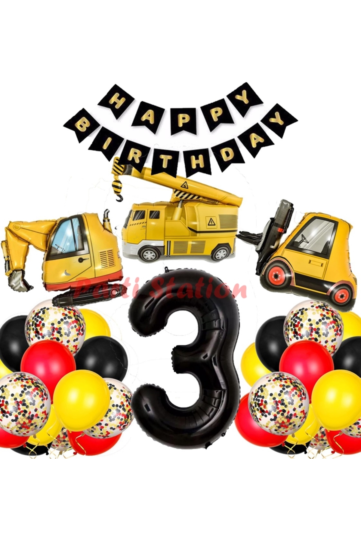 İş Makinaları İnşaat Parti Yaş Balon Set Kepçe Balon Vinç Balon Kamyon Balon Doğum Günü Set İnşaat Araçları ve İş Makineleri Doğum Günü Parti Balon Seti 1 Adet Rakam Folyo Balon