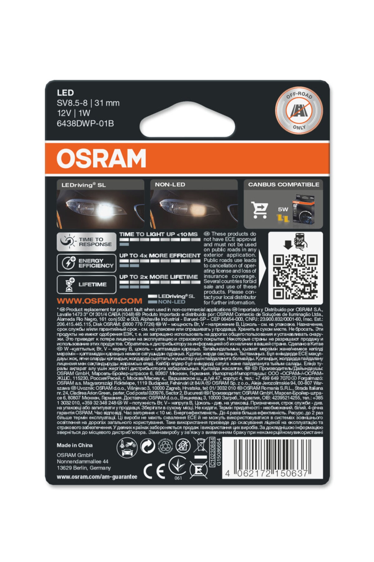 Osram C5W 31mm Sofit Uyumlu LED Ampul LEDriving SL C5W LED ampul 6.000 Kelvin'e varan renk sıcaklığıyla modern ve yoğun bir ışık sunar.