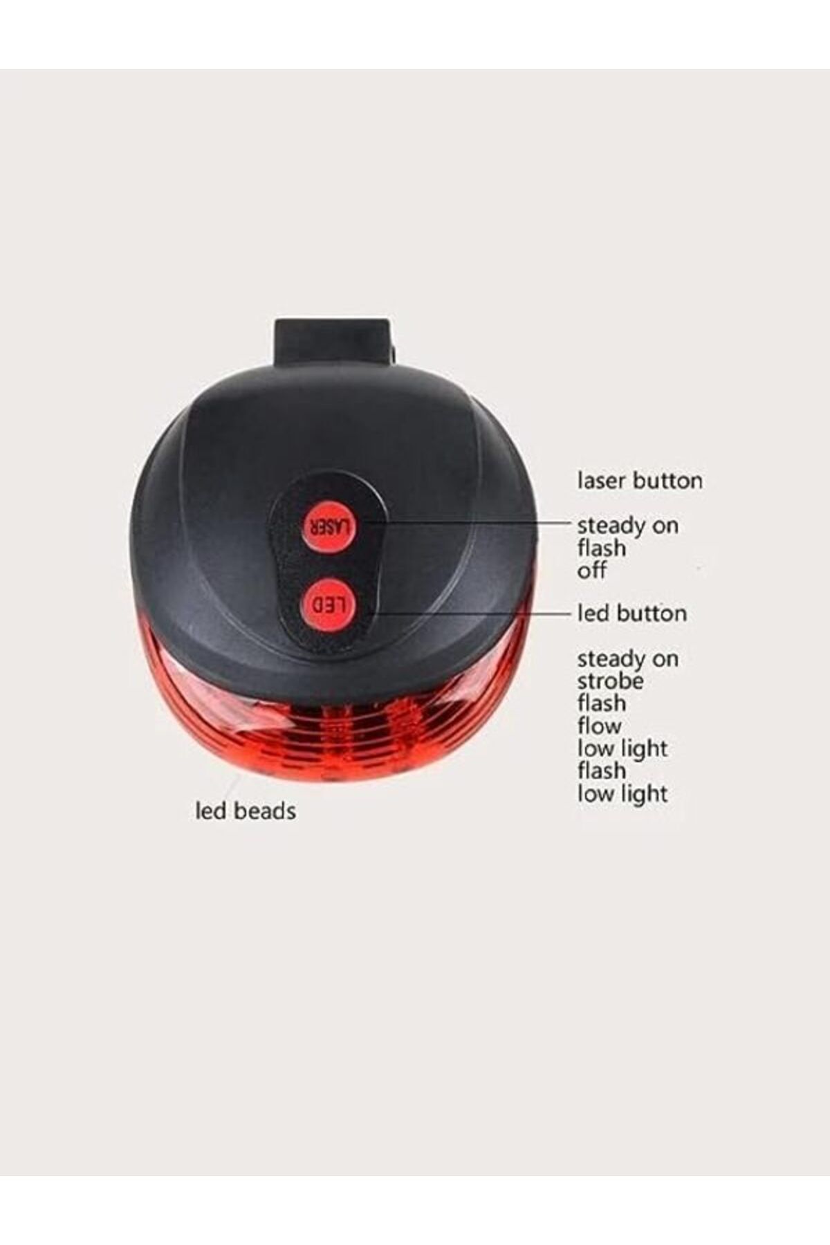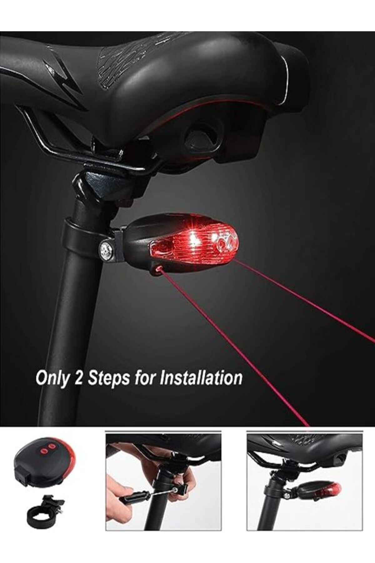 7 Farklı Işık Modu Lazer Güvenlik Şeritli 36 Saate Kadar Kullanım Süreli Led Arka Stop Lambası 2 ADET PİL İLE GÖNDERİLECEKTİR.