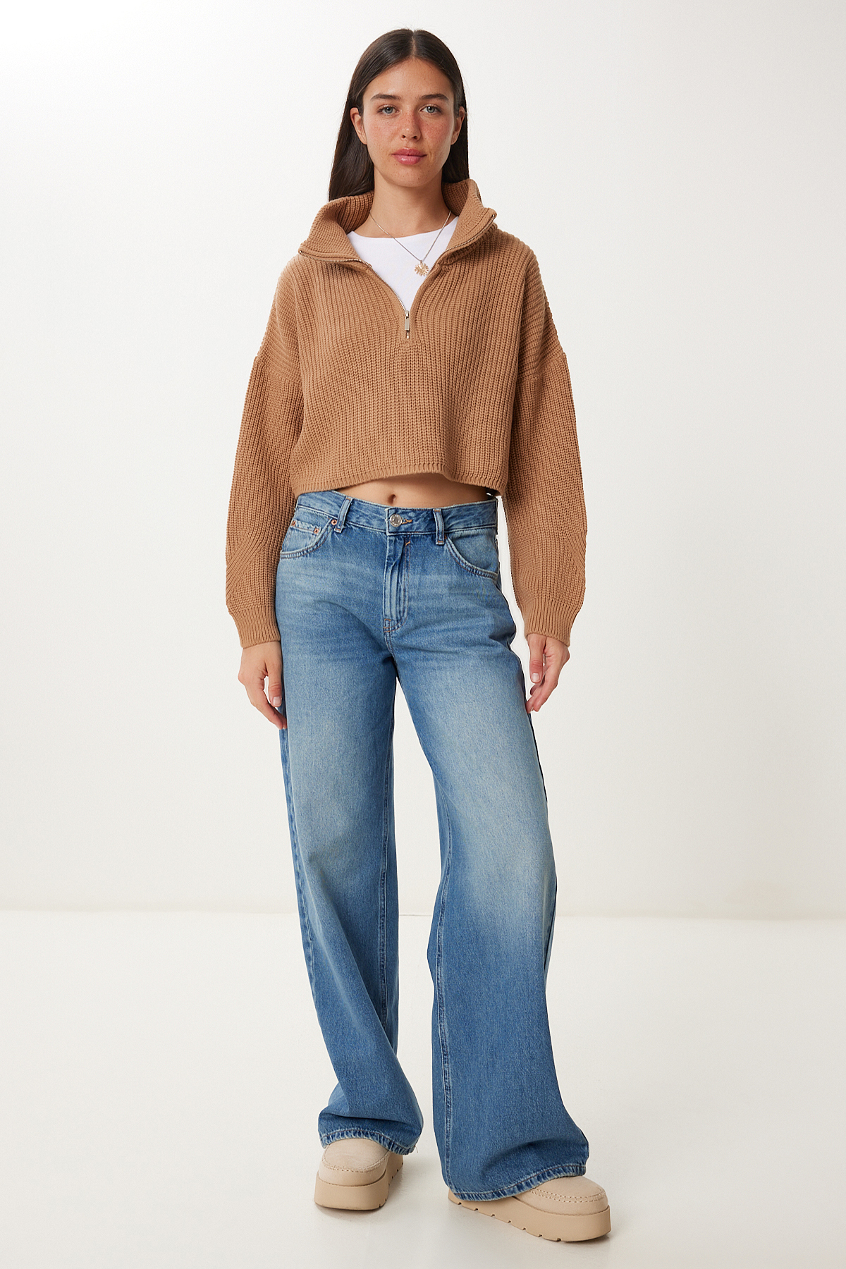 Kadın Bisküvi Fermuarlı Balıkçı Yaka Triko Kazak MX00124