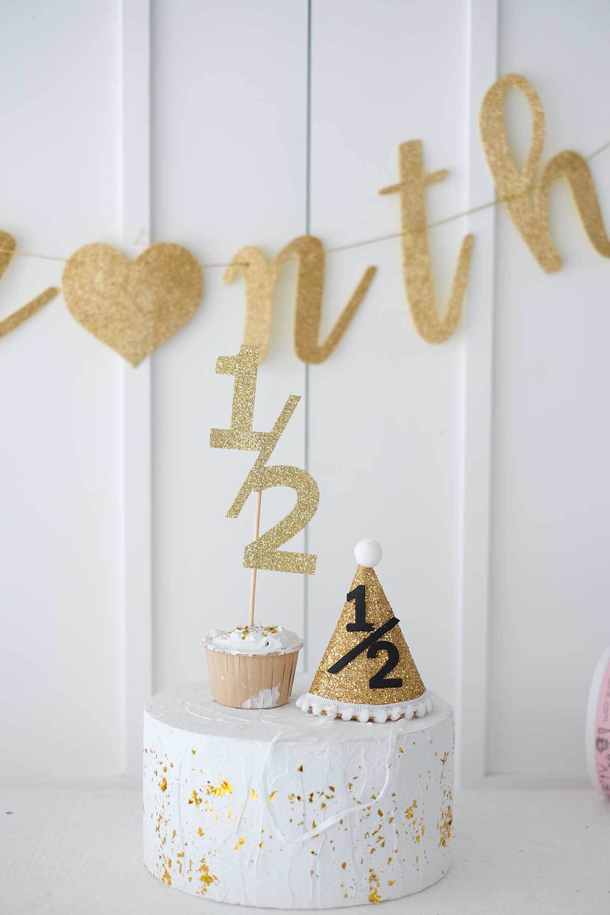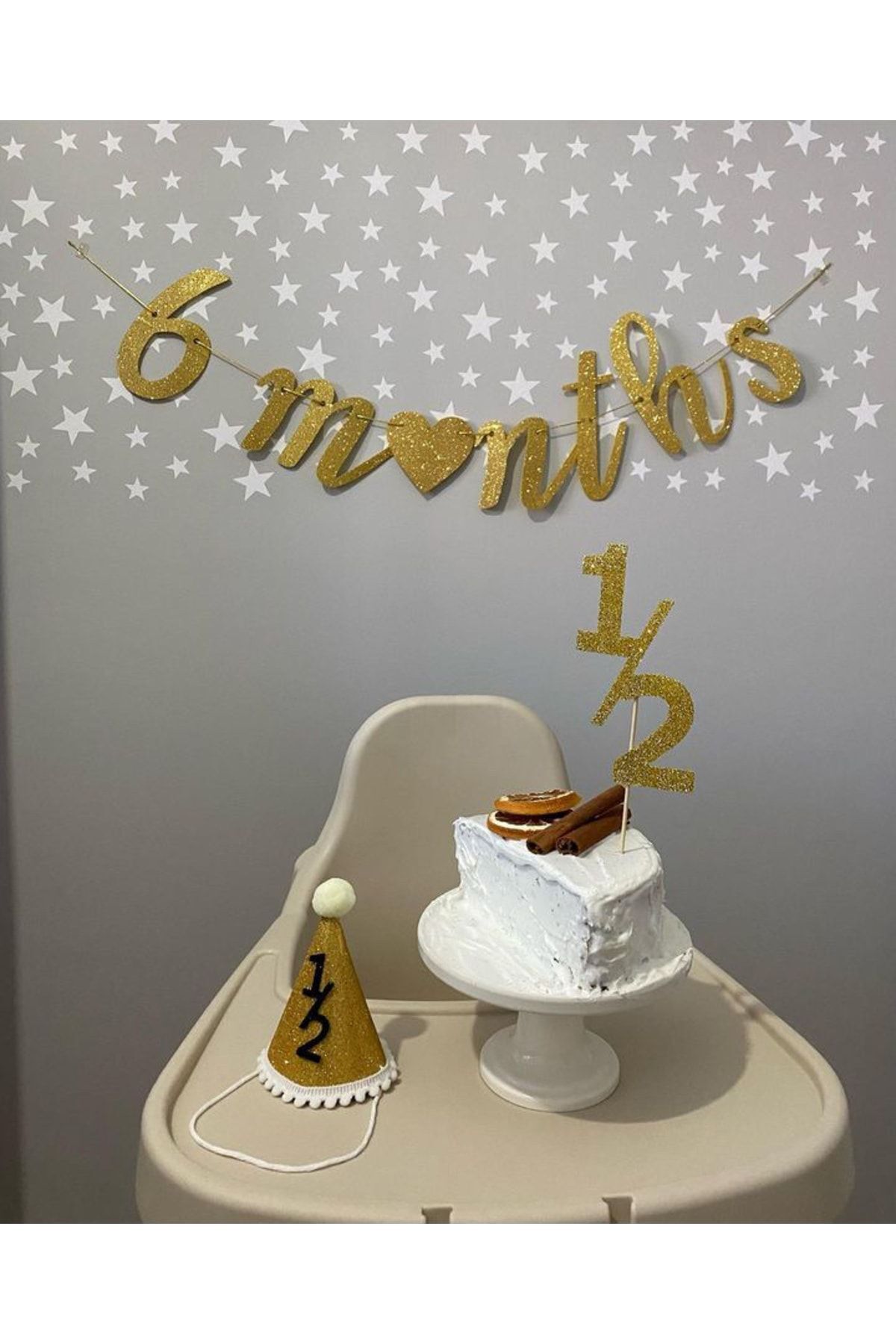 6 aylık bebeklerin ve yarım yaş partileri için ideal, altın rengi detaylarıyla göz alıcı bir görünüm sunar