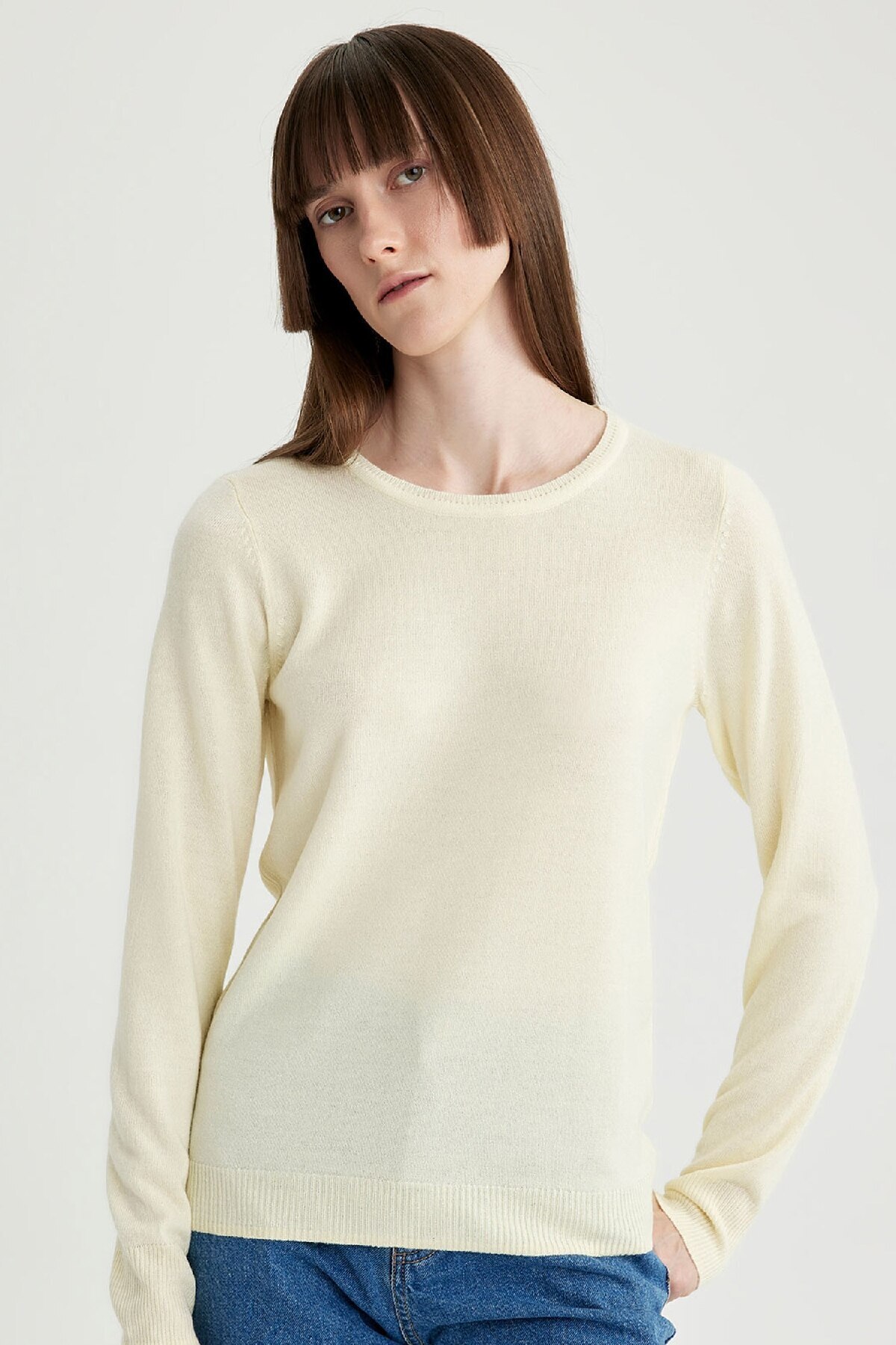 Bisiklet yaka, basic modeli ve regular fit rahat kesimi ile yüksek bel jean pantolon, mom fit jean, carrot fit pantolon, paper bag pantolon, midi etek, kalem etek, triko jogger pantolon, suni deri pantolon ve dokuma taytlarınızla kombinleyebileceğiniz, kış ve bahar aylarının en çok tercih edilen kullanışlı kombin parçası, yumuşak dokusuyla DeFacto Kadın Regular Fit Bisiklet Yaka Kazak.