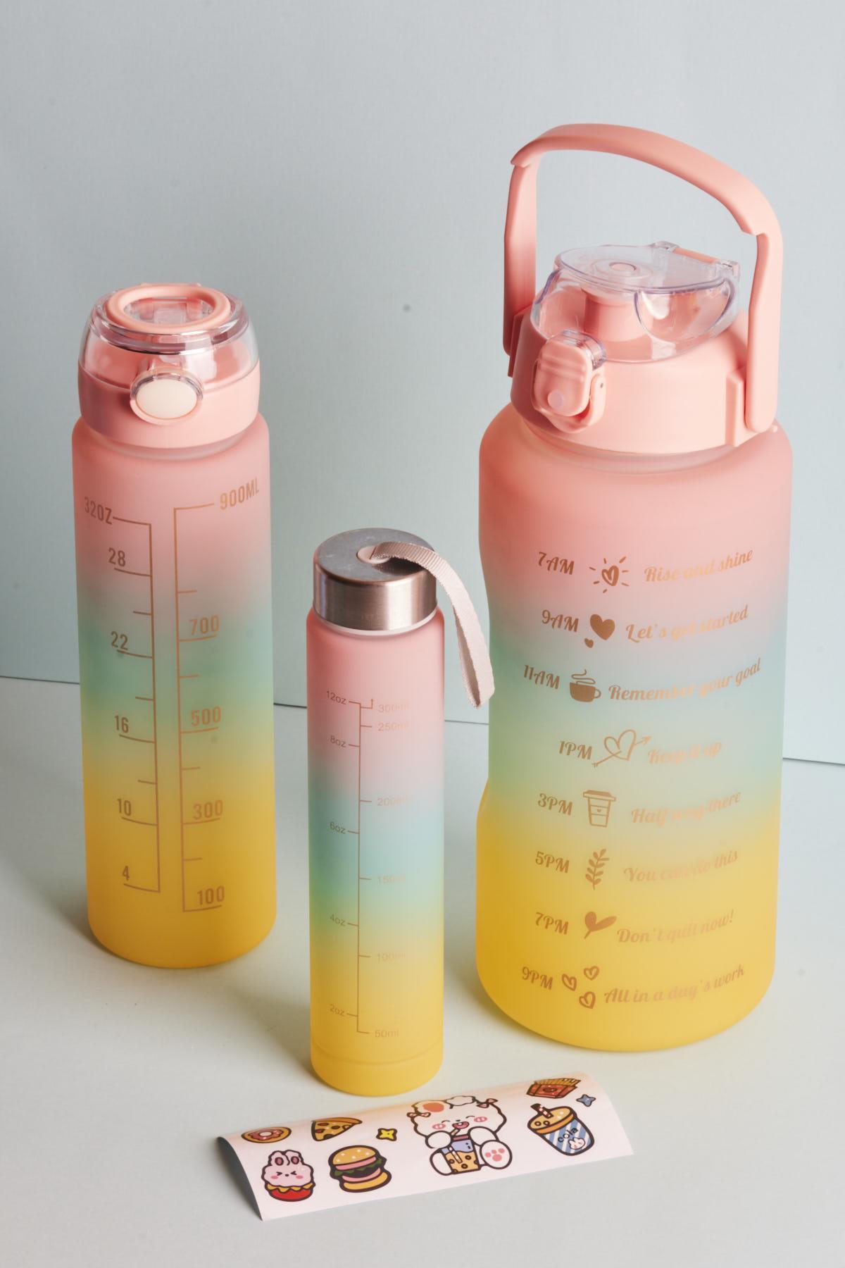 Perotti Misale Motivasyonel 3'lü Su Matarası Suluk 2lt+900ml+600ml Tritan Sporcu Matara-11918 -2.0 Lt - 900 ml - 300 ml 3'lü set motivasyonel zaman çizelgeli su matarası bir günlük su ihtiyacınızın tamamını karşılar.
