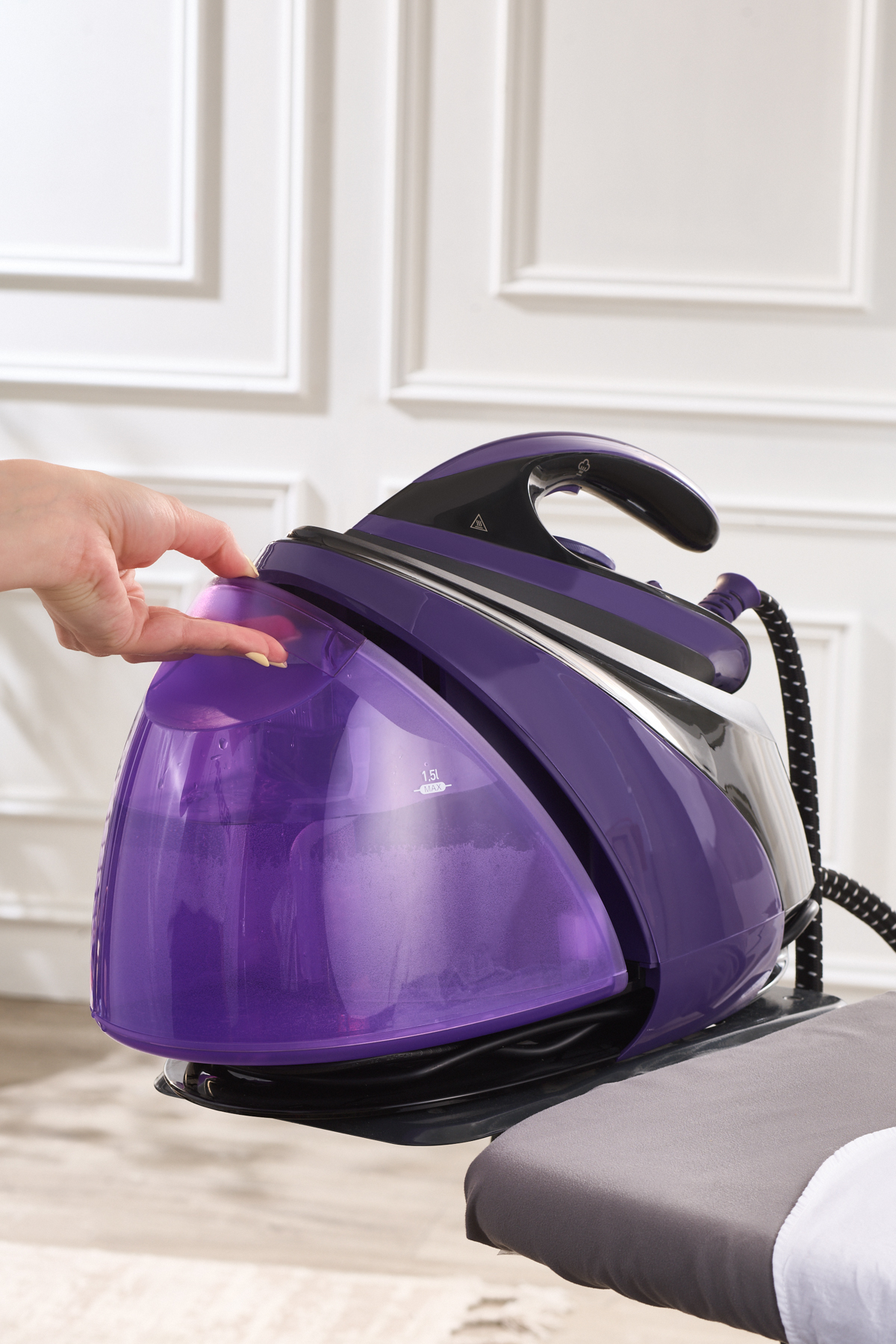 Homend Jetsteam 1173h Buhar Kazanlı Ütü Mor Siyah Yapışmaz tabanı ve yüksek buhar verimi ile JetSteam, tek seferde pürüzsüz kıyafetler için vazgeçilmeziniz olacak. 300 G ŞOK BUHAR 300 grama kadar şok buhar hızlı ile kolay ütüleme performansı. 3000 W 3000 W gücü ile ütüde yüksek performans. SU HAZNESİ 1,8 Litre çıkarılabilir su deposu ile uzun süre tazeleme gerektirmeyen rahatlık. 7 BAR 7 Bar buhar basıncı sayesinde tek seferde pürüzsüz kıyafetler. 140G/DK SÜREKLİ BUHAR 140g/dk buhar hızı ile pratik ve kolay ütü. YAPIŞMAZ TABAN Yapışmaz taban sayesinde ütüde konfor. OTOMATİK TEMİZLEME Otomatik temizleme fonksiyonu ile zahmetsiz temizleme. OTOMATİK KAPANMA Kullanılmadığında 10 dakika sonra otomatik kendini kapama özelliği ile güven dolu ütüleme. DİKEY ÜTÜLEME Yüksek buhar basıncı sayesinde dikey ütüleme performansı. GÜÇ GÖSTERGE IŞIĞI Güç gösterge ışığı ile ütünüz suyu bittiğinde size haber verir. TEKNİK ÖZELLİKLER Güç: 3000 W Su haznesi kapasitesi: 1,8 L 15 bar pompalama basıncı 7 bar buhar basıncı 140g/dk buhar hızı 300g hızlı şok buhar Yapışmaz taban Otomatik temizleme fonksiyonu Çıkarılabilir su haznesi Güvenli taşıma kilidi Kazansızütü ağırlığı: 3.313 Kg