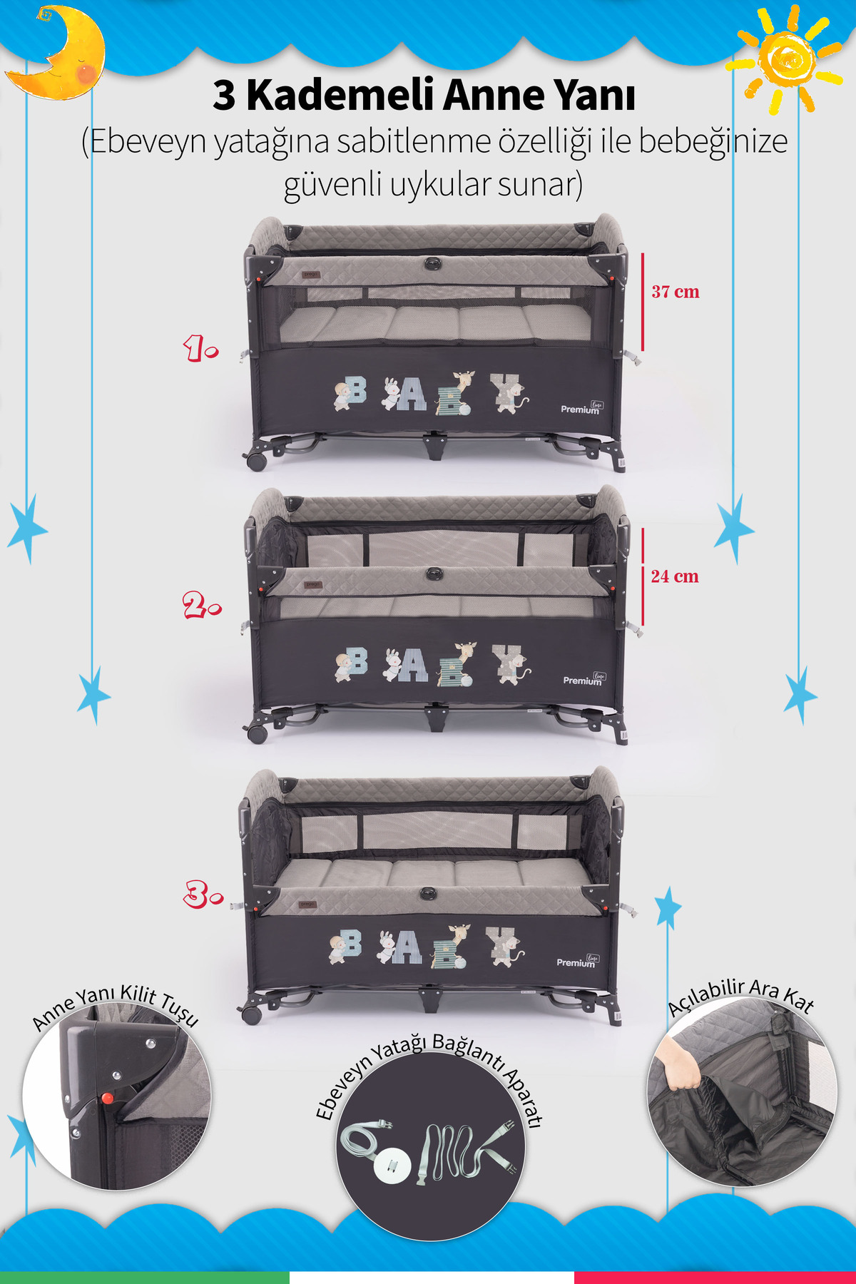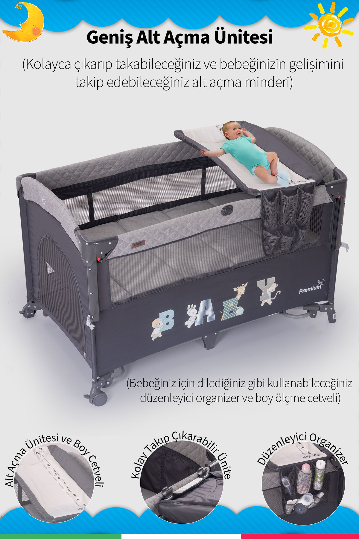 Bebeğinizin konforunu düşünerek tasarlanan bu premium line alt açma üniteli oyun parkı, bebeğinizin rahatça uyumasını sağlar.