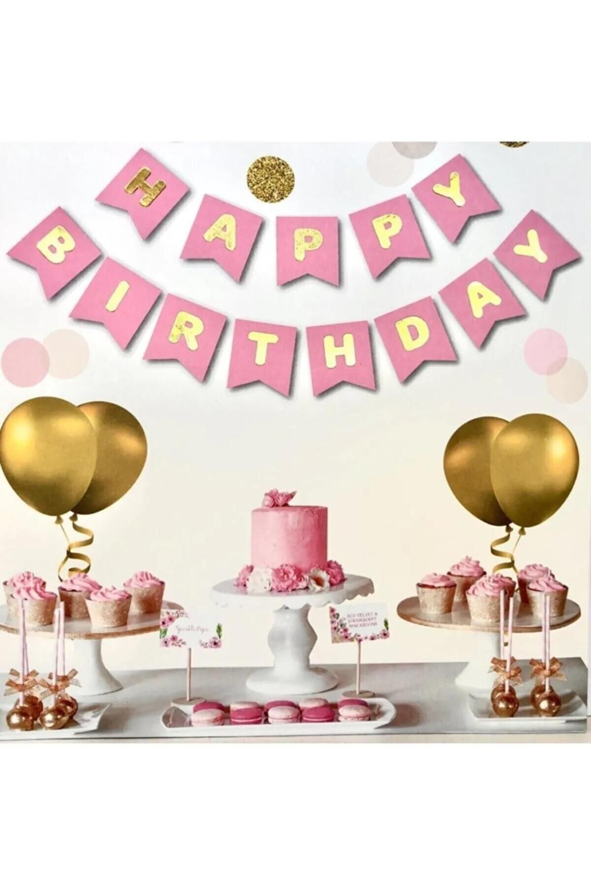 Paket içerisinde 1 set '' Pembe Gold Happy Yaldızlı Banner '' bulunmaktadır.