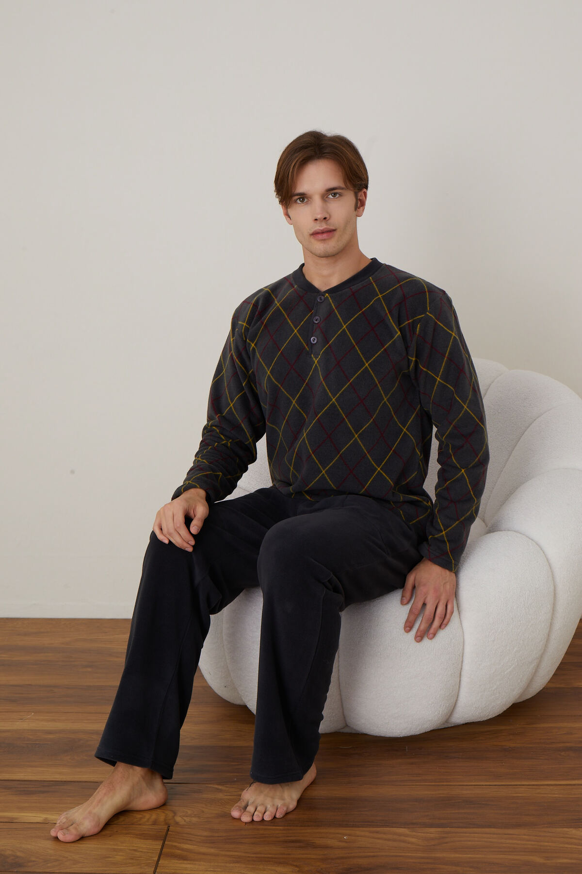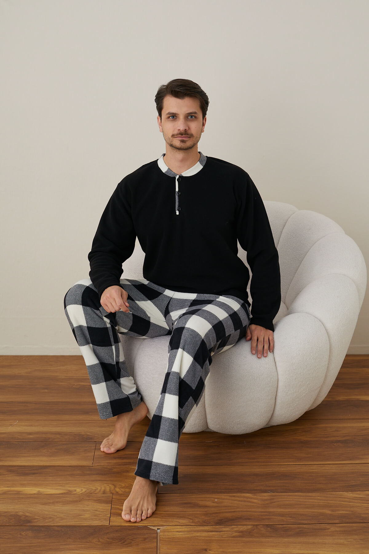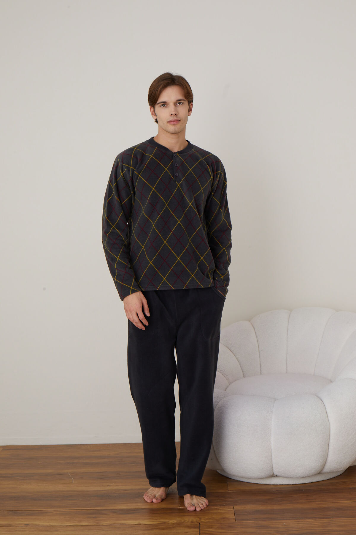 - Kış aylarında sıcak tutan polar kumaştan üretilmiş, erkekler için özel olarak tasarlanmış uzun kollu pijama takımı.
