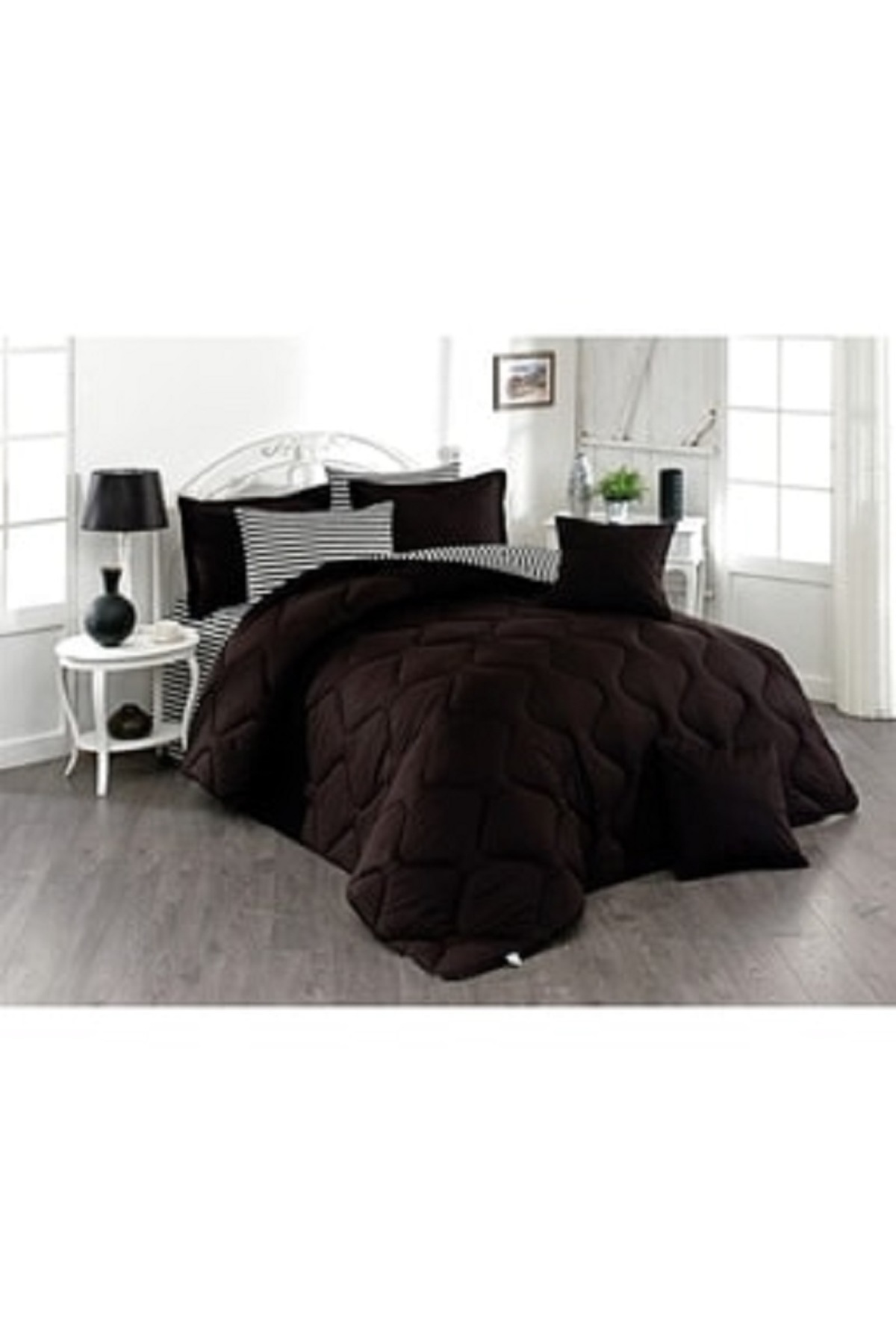 1 Adet Yorgan: 220 x 240 cm YIKAMA TALİMATI Yorgan: 30 derecede yıkanmasıtavsiye edilir Ağartma yapılmamalıdır Ütülenmesi tavsiye edilmez Orta ısıda ütülenebilir (Max 150°) Tamburlu kurutma yapılmamalıdır Benzer renklerle yıkanması tavsiye edilir.