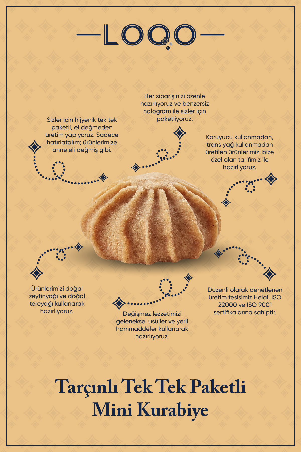 TARÇINLI MİNİ KURABİYE 500Gr içerisinde ortalama 80-100 adet tek tek paketlenmiş kurabiye bulunmaktadır.