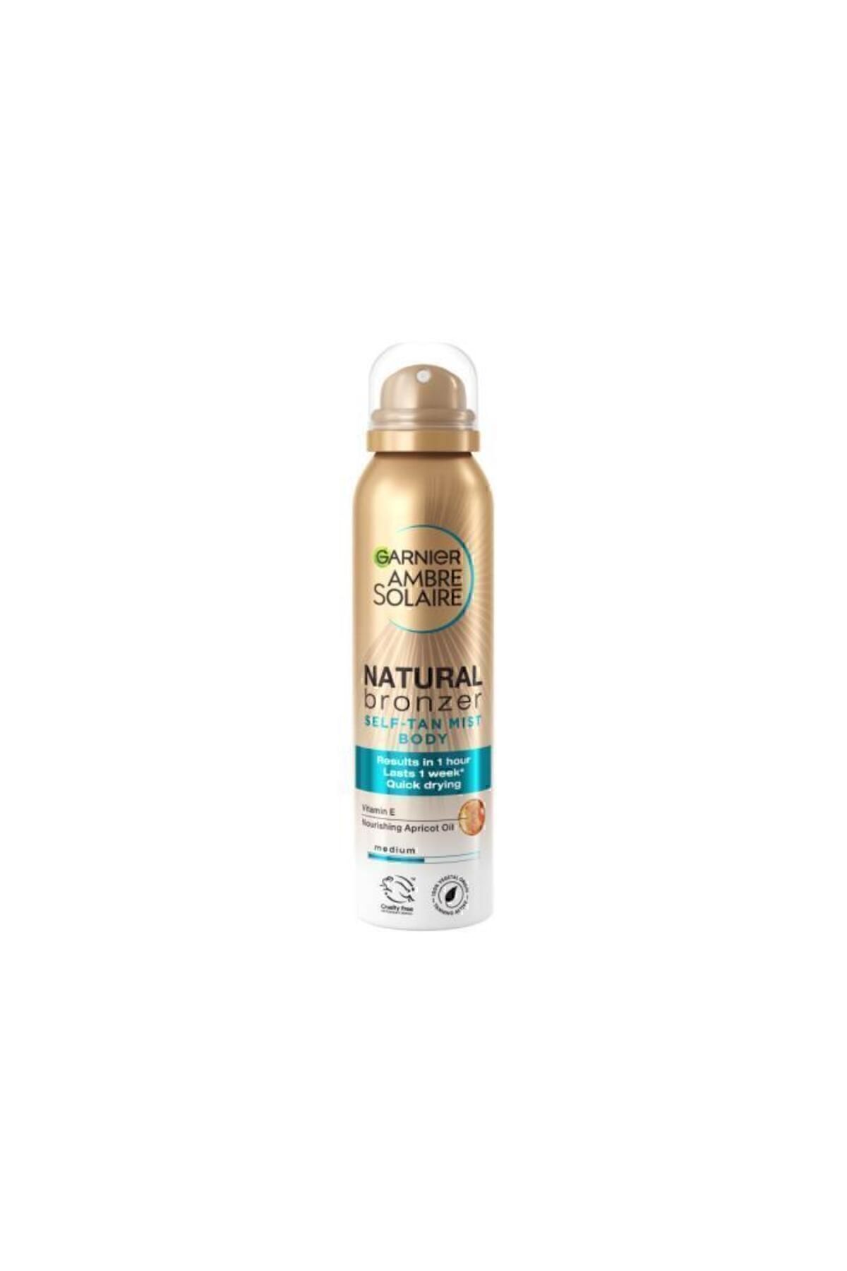 • Garnier Ambre Solaire Natural Bronzer Güneşsiz Bronzlaştırıcı Sprey 150 ml TEK KULLANIMDA 1 HAFTAYA KADAR* SÜREN BRONZLUK Garnier Natural Bronzer %100 bitkisel kaynaklı bronzlaştırıcı aktif ve yağ içeren formülü ile uzman bronzlaştırıcı çözümler sunar, cilde ışıltılı ve doğal bir görünüm verir.
