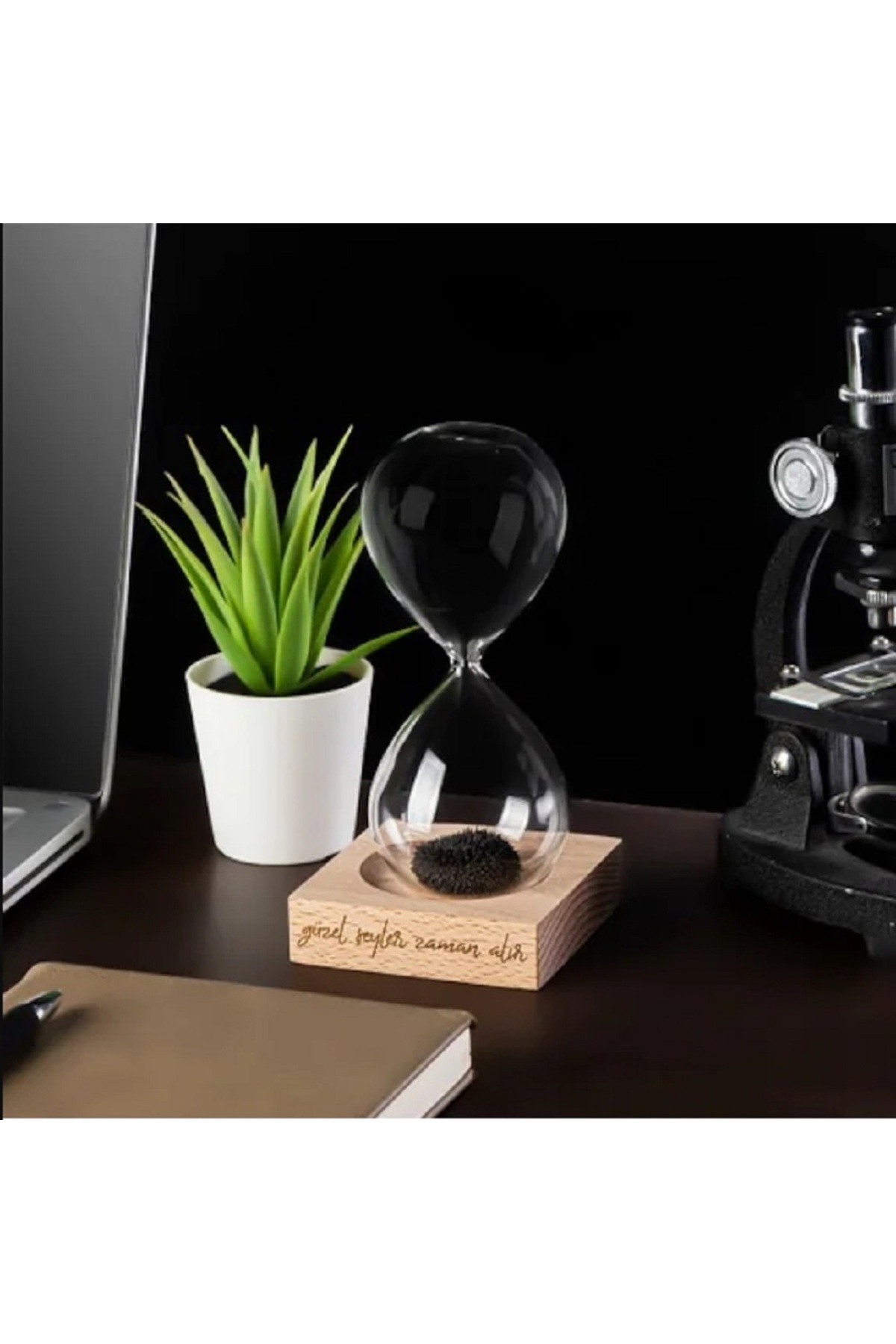 Güzel Şeyler Zaman Alır Mottolu Ahşap Kaideli Manyetik Kum Saati özenle hediye paketi yapılarak gönderilmektedir.