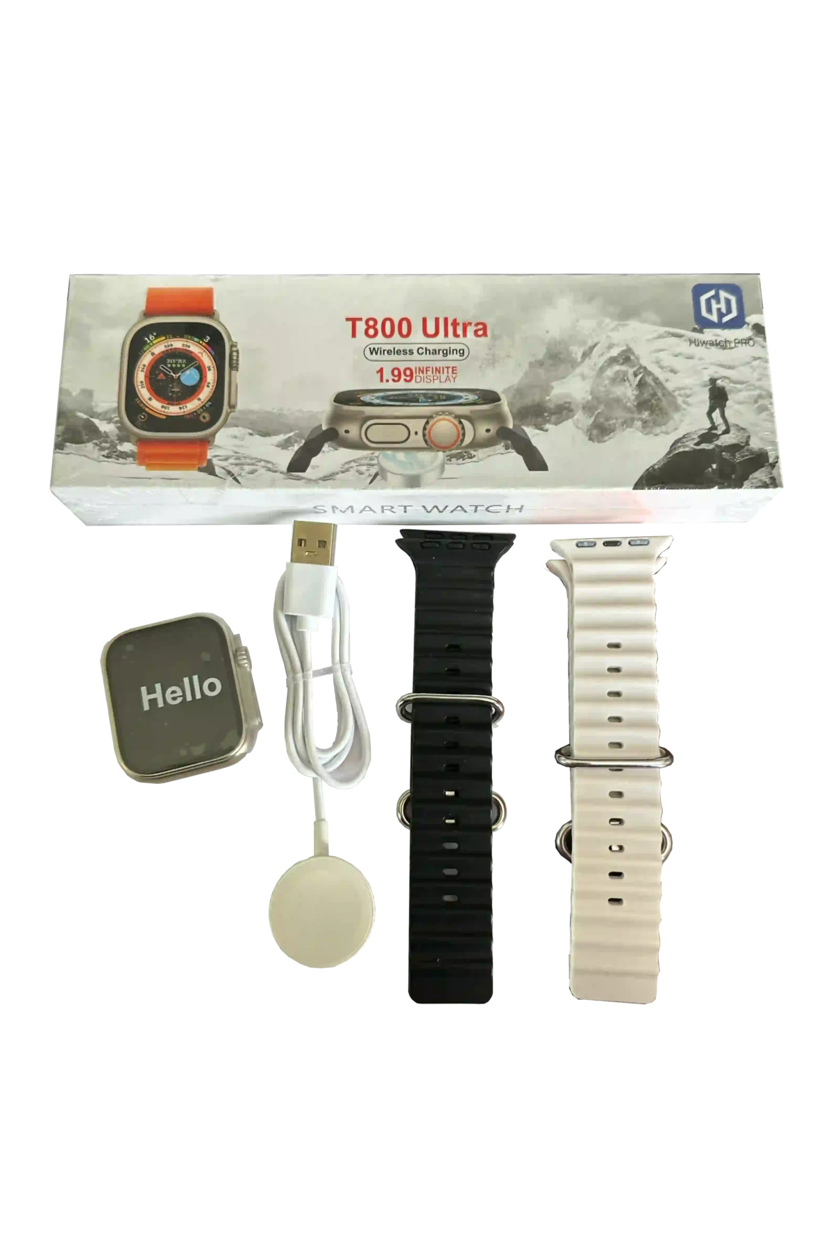 1.99 HD Ekran Akıllı Saat Ürün Açıklaması T800 UItra Akıllı Saat Açıklama 1.Boyut: 38.5*44.5*14mm 2.Bant malzemesi: Silika jel 3.Ana ekran: 1.99 inç LCD 250*2854.Bt 4.0 5.0 çağrı bluetooth desteği 5.Şarj modu: kablosuz şarj 6.Touch ekran:Tam dokunmatik ekran 7.Görünüm malzemesi:Çinko alaşımDaha fazla işlev:Çok dilli özel bileşenler,Özel saat yüzü,Nefes egzersizi,Mesaj hatırlatıcı,Çağrı reddetme.Zaman alarmı, cep telefonu Döndür düğmesi, müzik kontrolü, uzaktan kumandalı kamera, kronometre, geri sayım, ince cep telefonu, hava durumu tahmini vb.BT araması nasıl kullanılır: Bluetooth arama işlevi, çift Bluetooth sinyal desteği gerektirir, bu nedenle talimatlara göre iki kez bağlanmanız gerekir: 1-Kılavuzdaki QR kodunu cep telefonu tarayıcısı aracılığıyla tarayın, özel APP'yi indirin ve BT cep telefonunu açın.