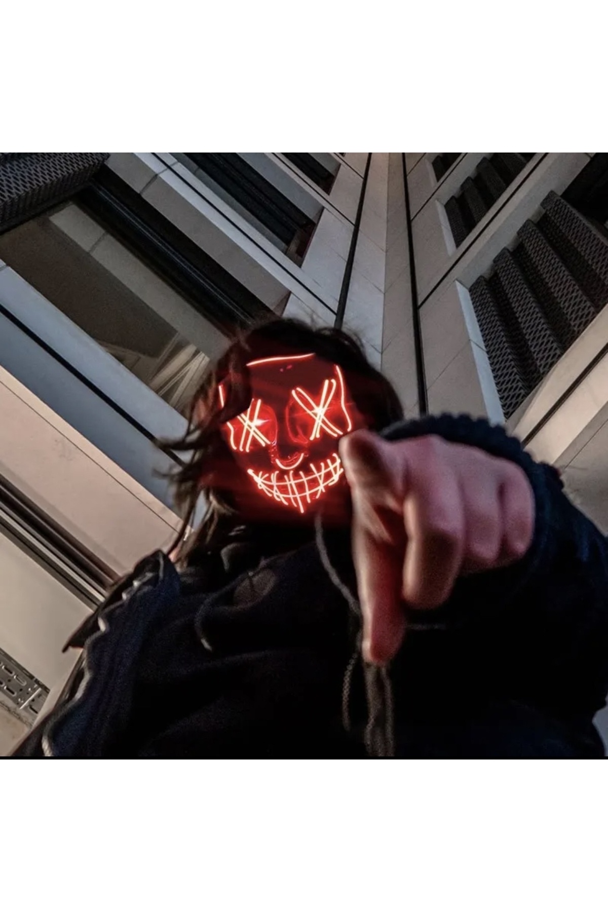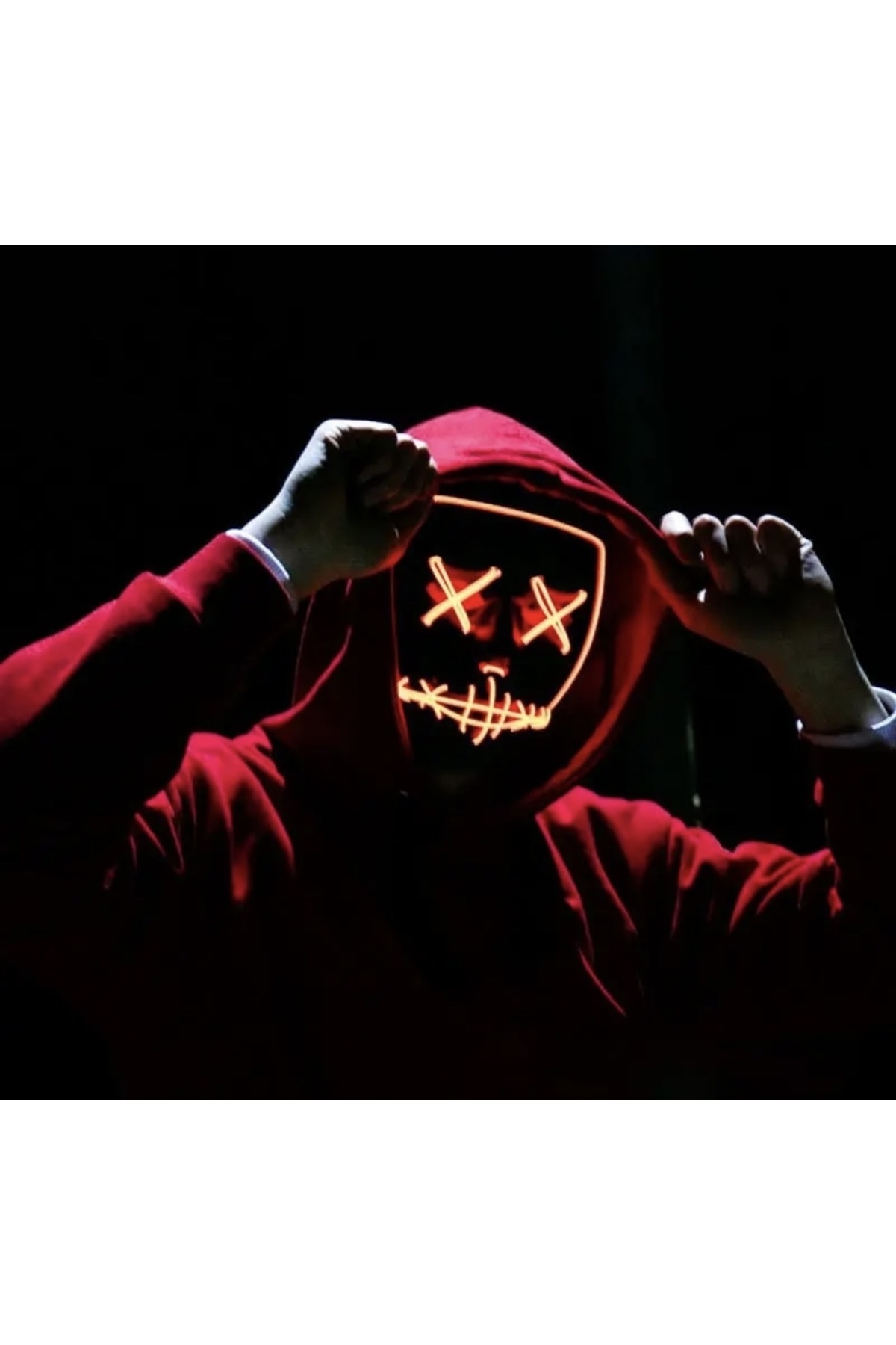 Malzeme : Pvc + El tel Boyut : 19 x 17 x 8 cm Tam yüz maske Renk : Kırmızı 2 adet kalem pil ile çalışır Pil dahil değildir