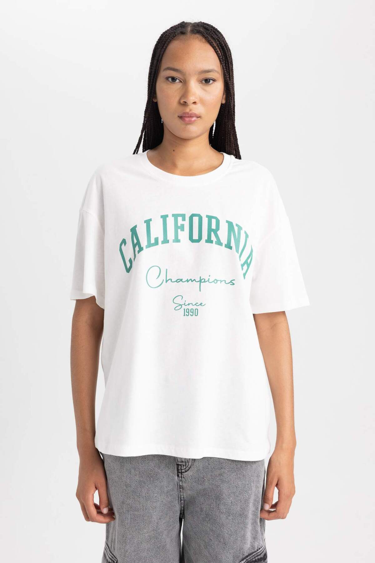 Oversize Geniş Kalıp Bisiklet Yaka Kısa Kollu Tişört B0661AXNS