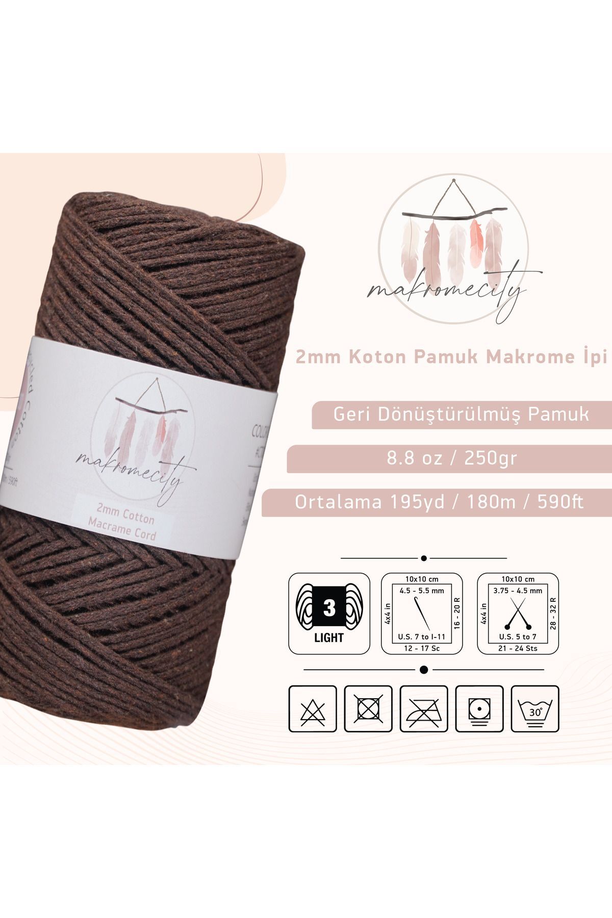 200 gram ağırlığındaki bu makrome ip, uzun süreli projelerinizde rahatlıkla kullanılabilir