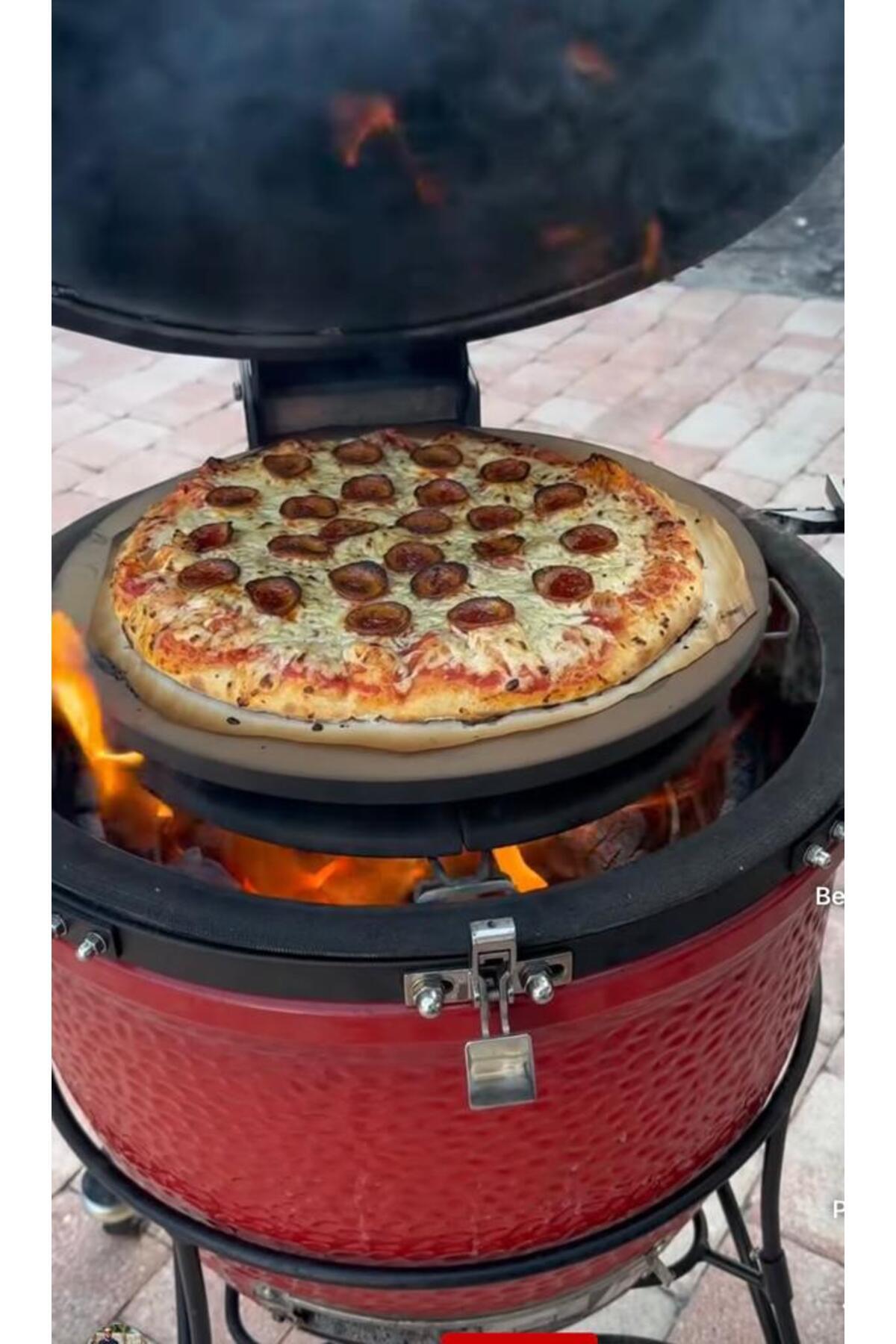 Mangal aksesuarları arasında yer alan bu pizza taşı, hem fonksiyonel hem de görsel bir katkı sunar