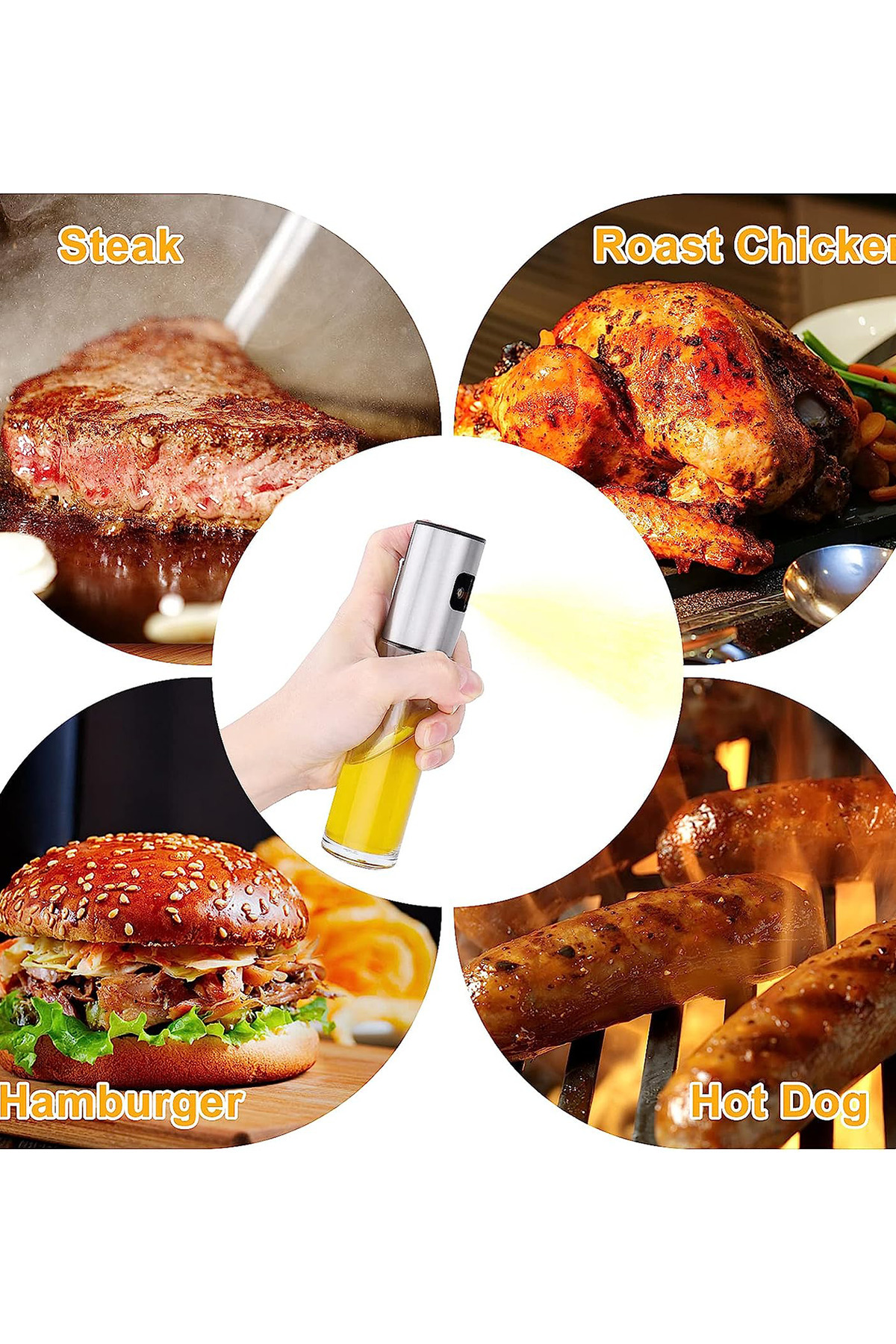 - Spreyli zeytinyağı yağdanlığı, yağ, ayçiçek yağı, zeytinyağı, sirke, soya sosu, limon, limon suyu, yemeklik şarap ve şeri gibi çeşitli çeşnilerle doldurulabilir.