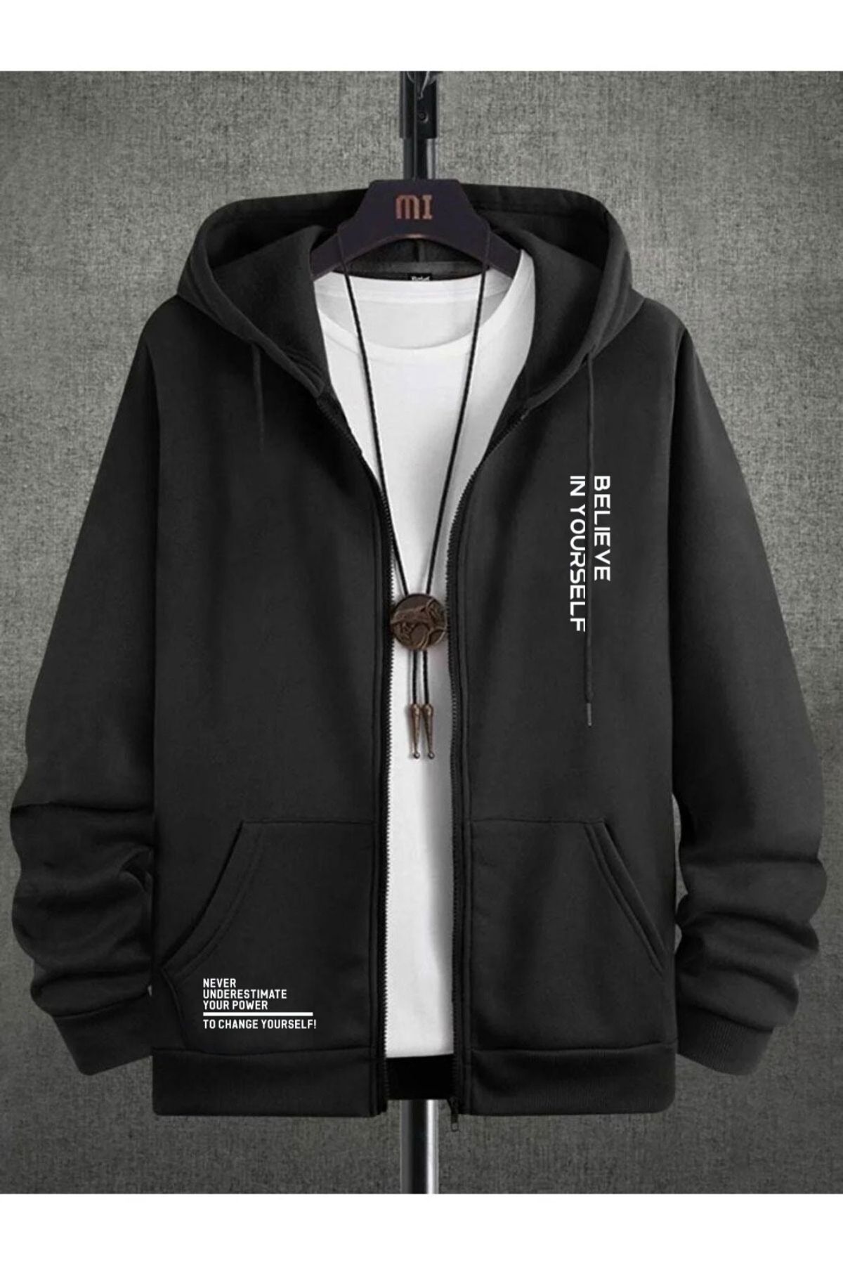 Her yaştan erkeğin tarzını tamamlayacak şekilde tasarlanan siyah renkli kapüşonlu hırka, rahat ve şık bir görünüm sunar.