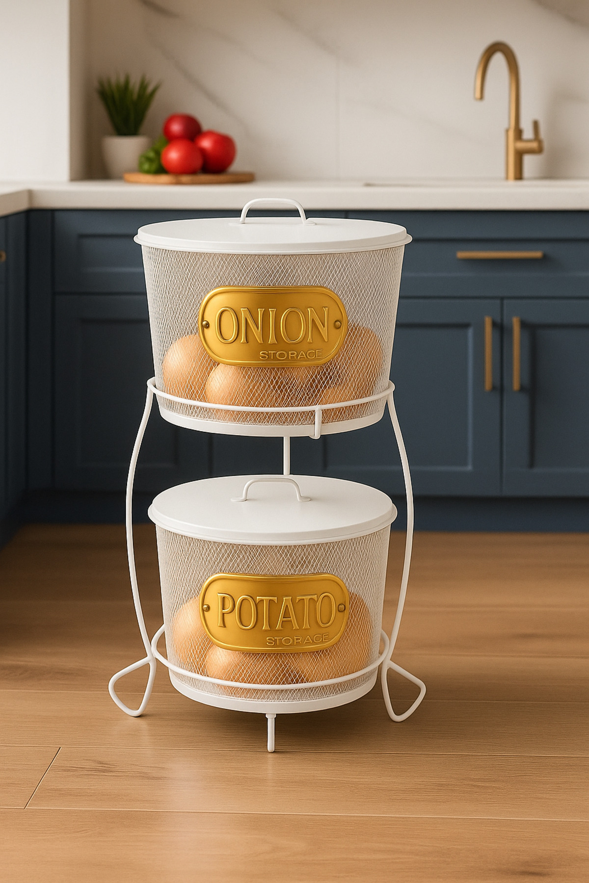 Neden Bu Metal Patates Soğan Kovalarını Seçmelisiniz? 2 Katlı Metal Patates Soğan Kovaları, mutfakta düzeni ve tazeliği sağlamak için harika bir araçtır.
