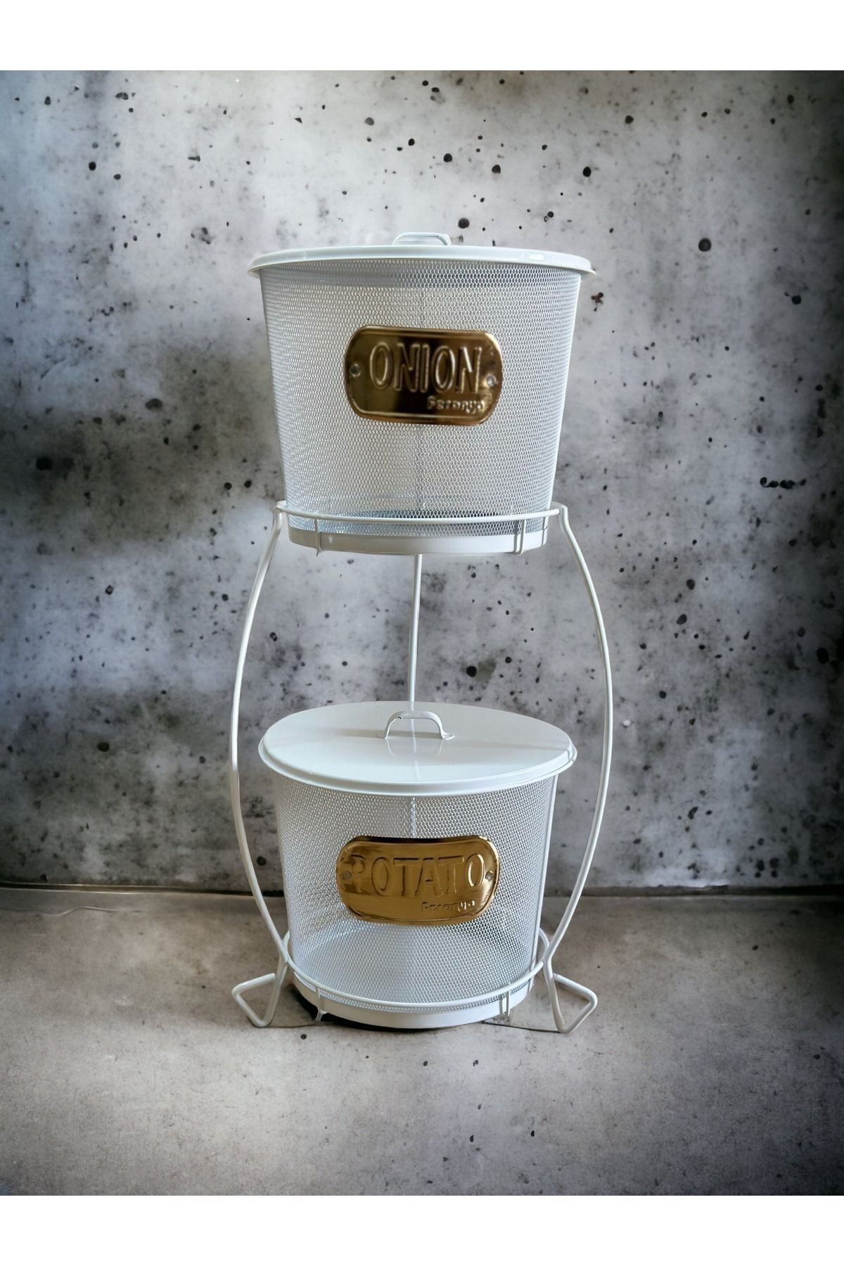 2 Katlı Metal Patates Soğan Kovaları - Pratik ve Organize Depolama Çözümü! Evde patates ve soğan gibi sebzeleri düzenli bir şekilde saklamak ve depolamak için pratik bir çözüm arıyorsanız, 2 Katlı Metal Patates Soğan Kovaları tam size göre! Bu özel tasarım kovalar, çelik malzemeleri ve 2 katlı yapısı ile sebzelerinizi düzenli ve havadar bir şekilde saklamak için ideal bir seçenektir.
