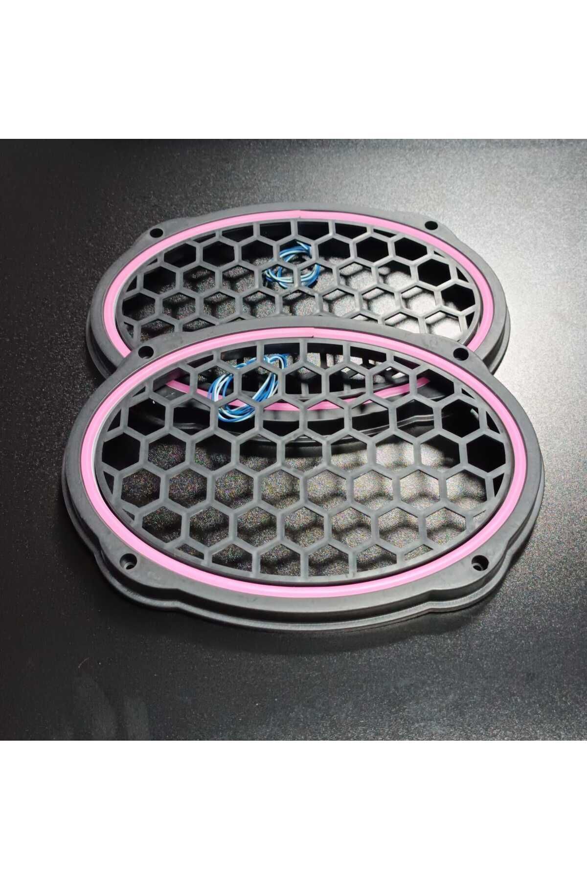 Oval formda tasarlanmış, 6x9 boyutlarında koaksiyel hoparlörler için ideal uyumlu neon pembe ışıklı kapaklar, aracınızın iç mekanını şık bir şekilde aydınlatır