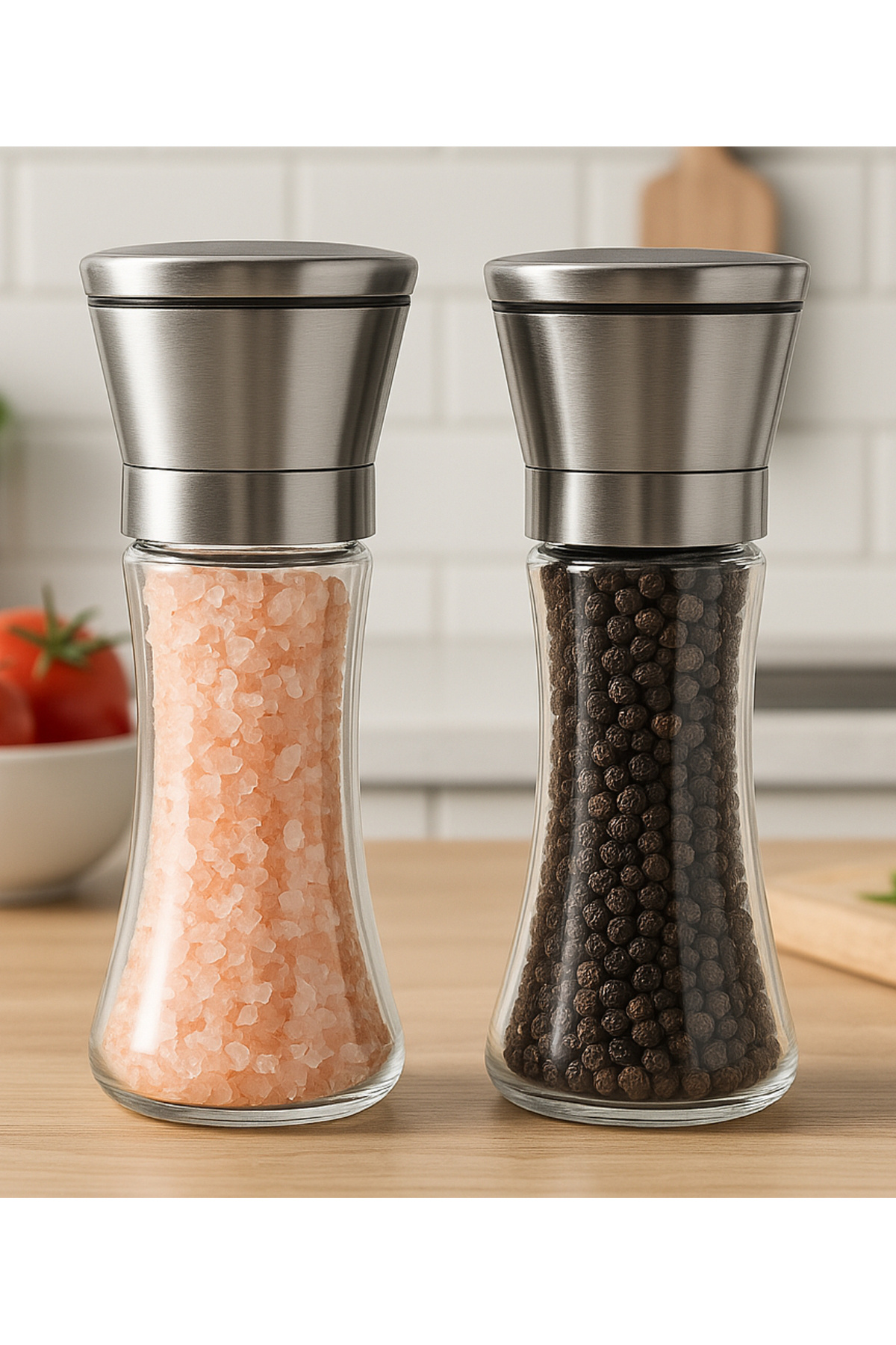 İki adet cam gövde, tuz ve karabiber öğütme işlemleri için ayrı ayrı kullanım imkanı sağlar, böylece her iki baharatı ayrı ayrı öğütebilirsiniz