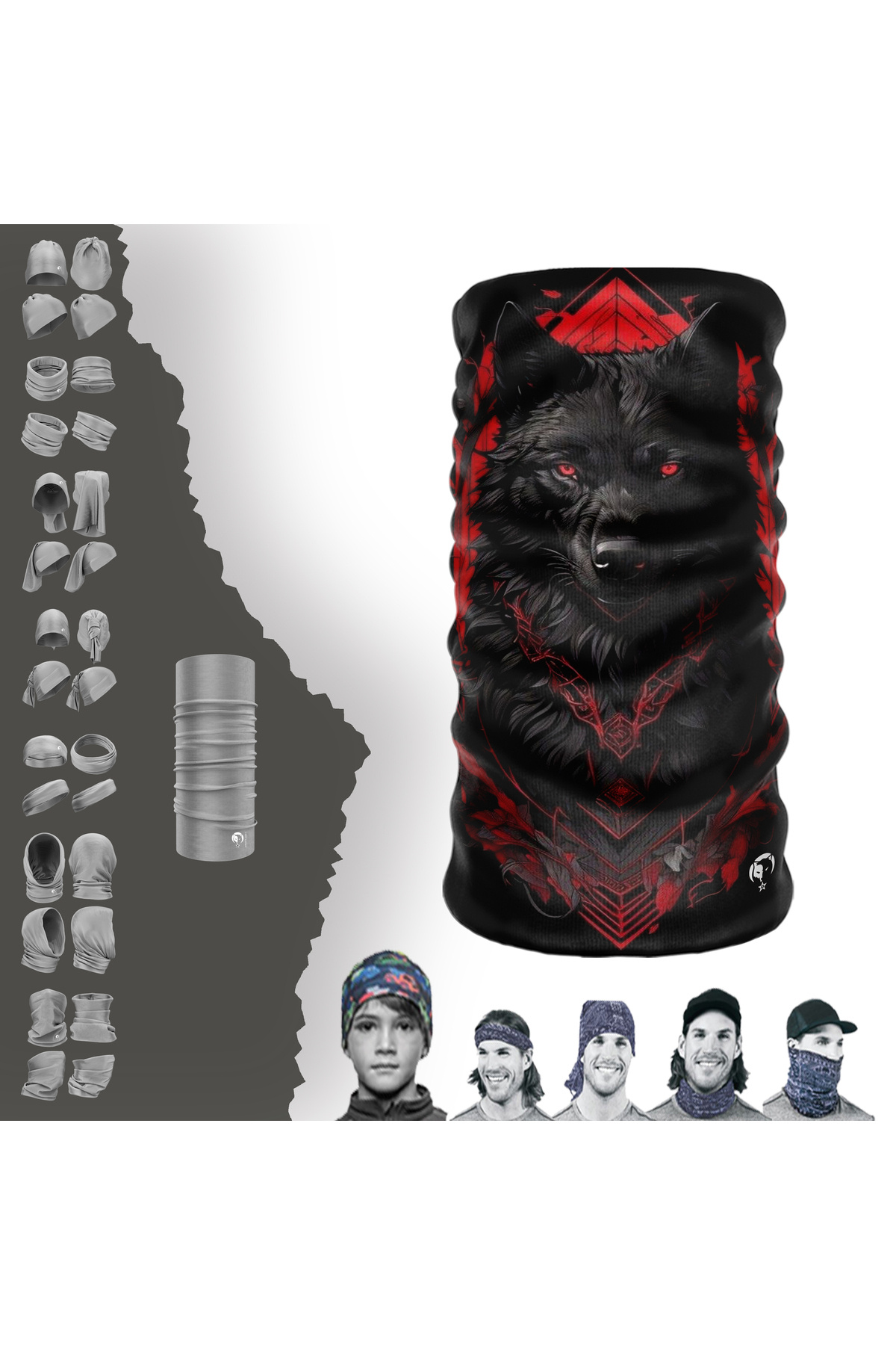 Siyah Alfa Kurt Desenli Boyunluk-baf-buff-maske-bone-saç Bandı