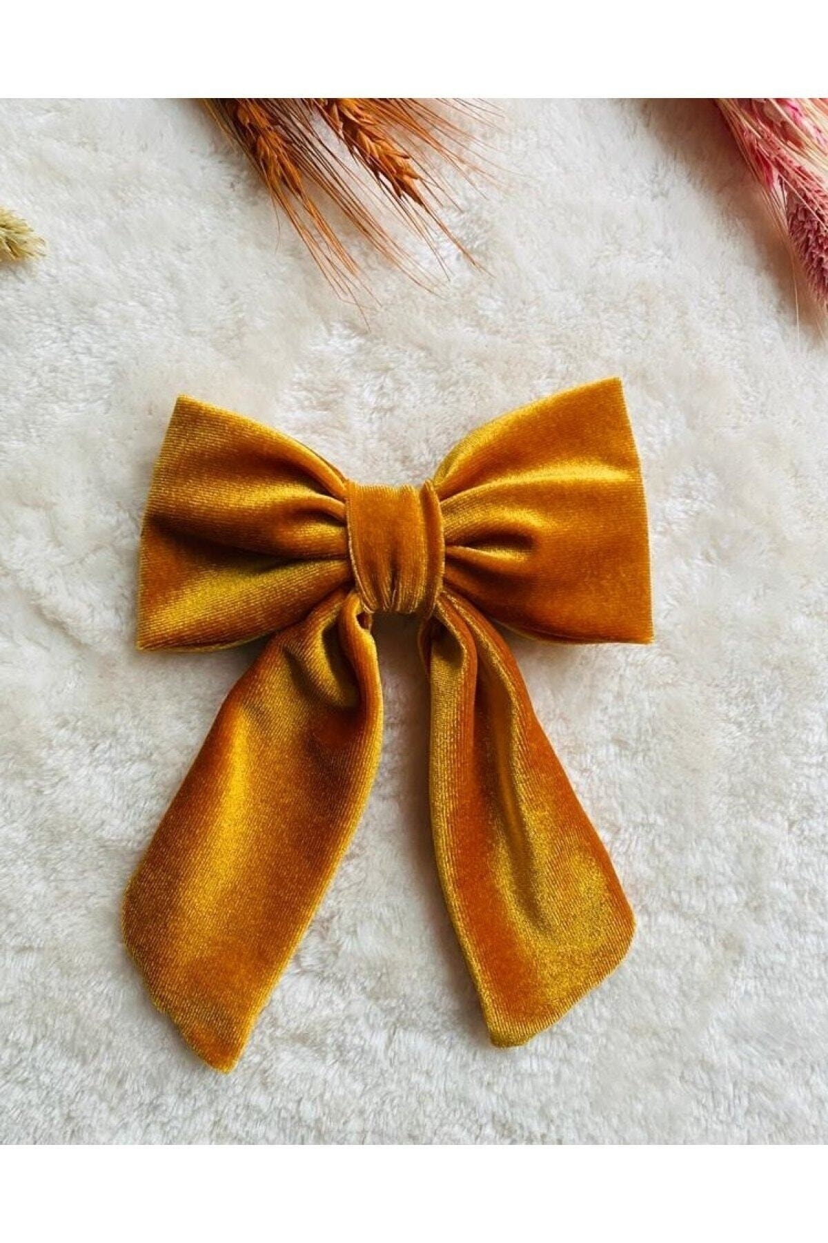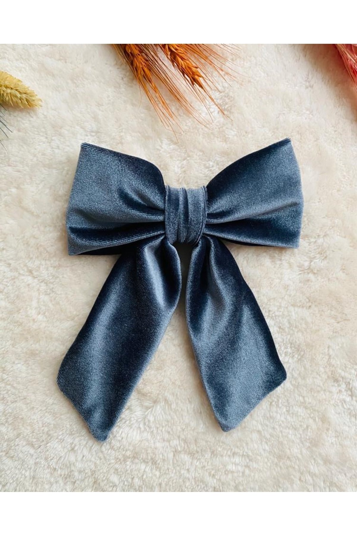 Klasik ve zamansız tasarımıyla her kıyafetle uyum sağlayan düz desenli siyah kadife otomatik fiyonk toka