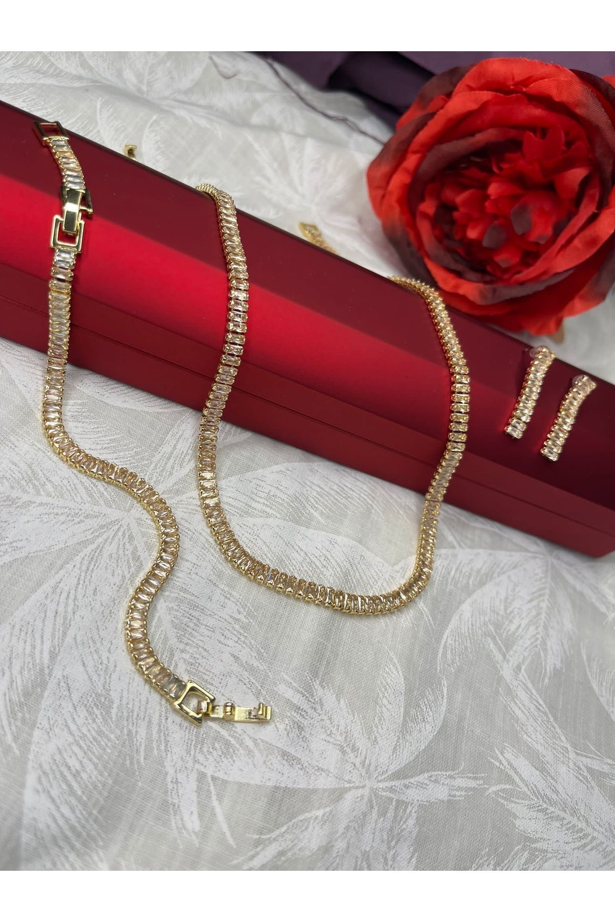 Pırlanta kesim baget taşlarla süslenmiş, göz alıcı bir parlaklık sunar