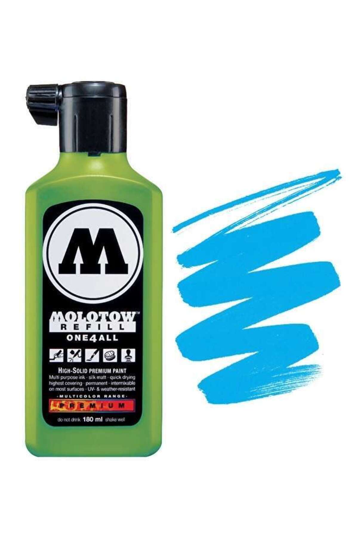 Molotow One4All Refill 50 renk tonu ile ONE4ALL sistemi, karmaşık renk spektrumu neon ve metalik renkleri de içerir. Düz renk tonlarının iyi UV direnci ve yüksek opaklığı sayesinde, ONE4ALL akrilik boya genellikle çeşitli sanat projeleri için kullanılır. Akrilik kalemler / akrilik keçeli kalemler, kullanışlı dolum şişesi sayesinde kolayca yeniden doldurulabilir. Ayrıca, akrilik boya dolum şişeleri, dolum ve bir fırça kullanılarak daha büyük yüzeylerde sanat uygulamaları için sıklıkla kullanılır. Metal, Plastik, Cam, Deri, Modelleme Çamuru gibi yüzeylerde kullanılır. Ayrıca emici yüzeylerde