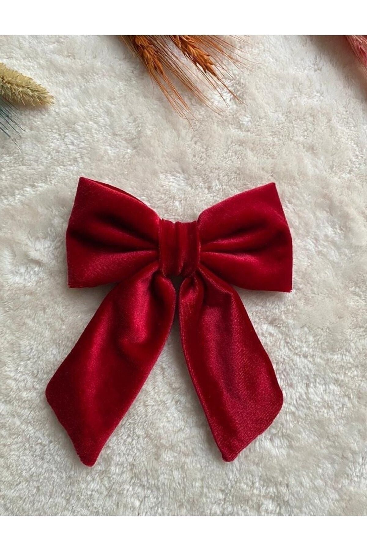 Kırmızı kadife otomatik fiyonk toka, şık ve zarif tasarımıyla dikkat çeker