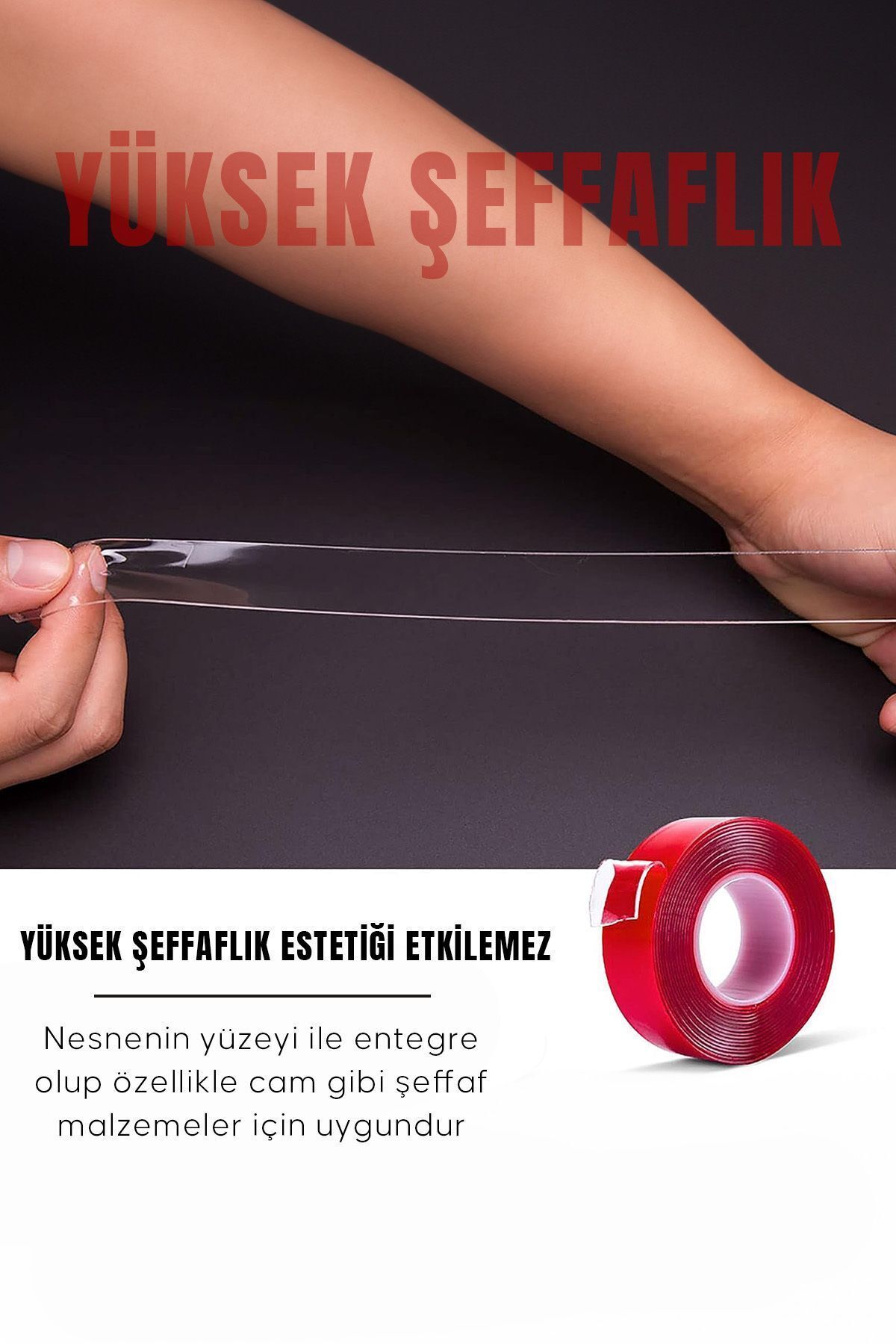 1 ADET - SİLİKONLU ŞEFFAF ÇİFT TARAFLI MONTAJ BANDI 18mm X 2M 18mm x 2 Metre ebatlarında olup evinizde, ofisinizde ve tüm kuru yüzeylerde uygulayabilirsiniz.