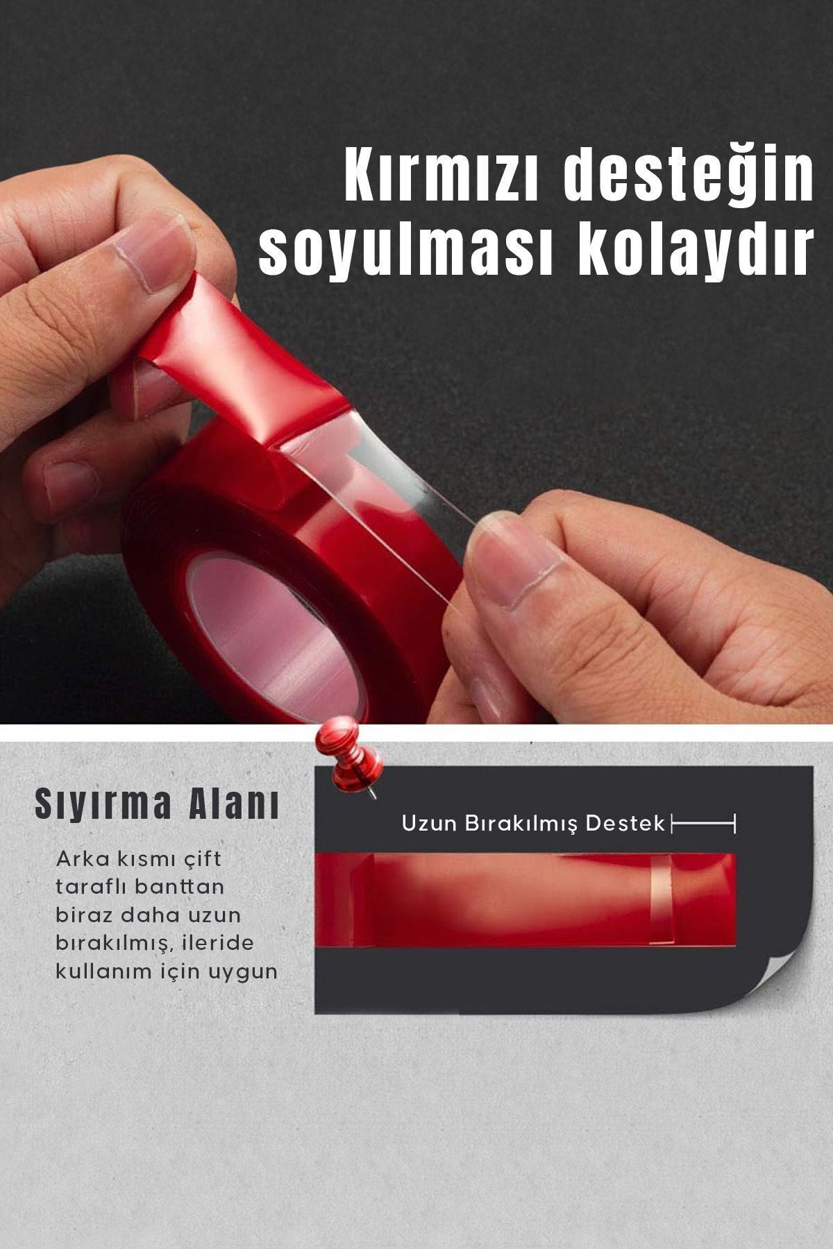 Çift taraflı süper güçlü akrilik montaj bandı ile artık vidalama ve delme işlemi yapmanıza gerek kalmaz.