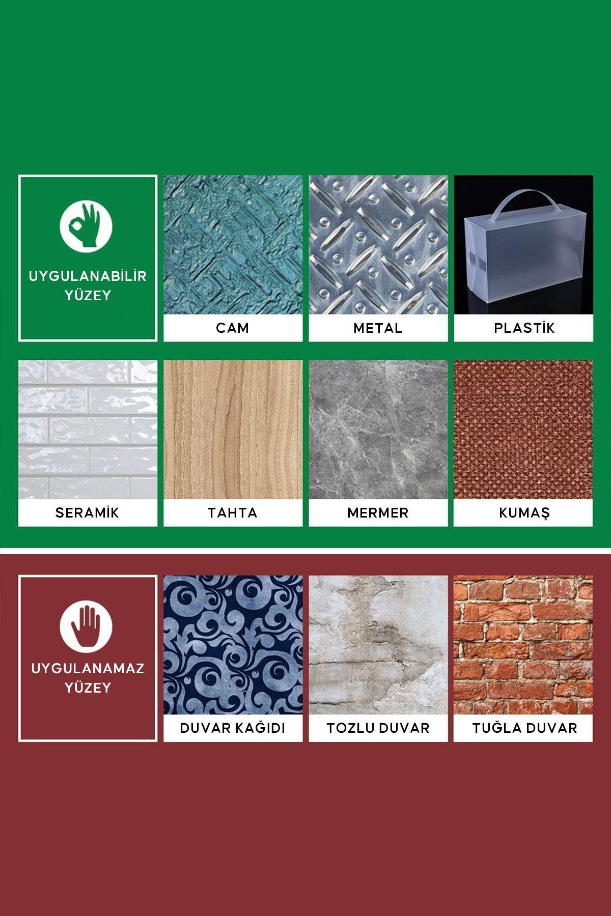 - Plastik, cam, ahşap, pvc, boyalı ve boyasız yüzeylerde son derece başarılıdır.