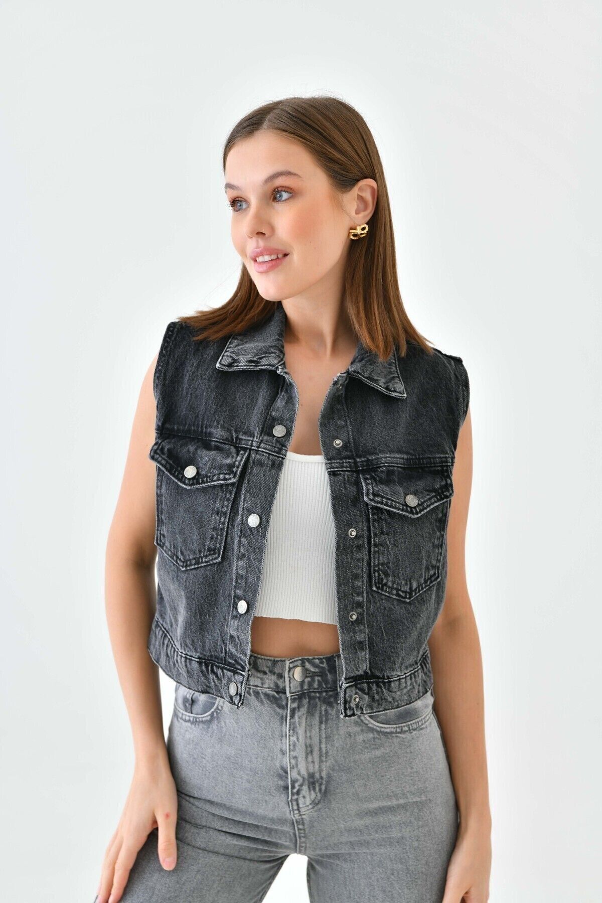 - Mini boyu ile dinamik ve genç bir siluet çizerken, denim kumaşın dayanıklılığı uzun süreli kullanım vaat eder