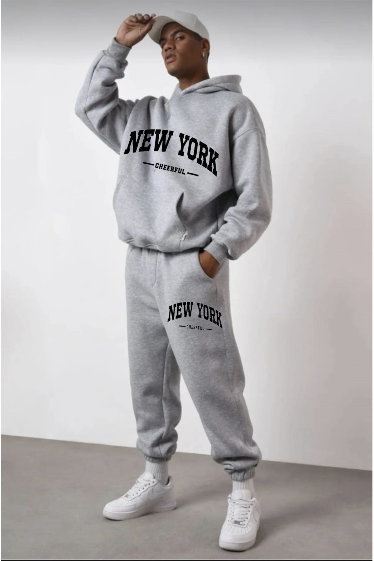 Sweatshirt ve pantolon olmak üzere iki parçadan oluşan alt