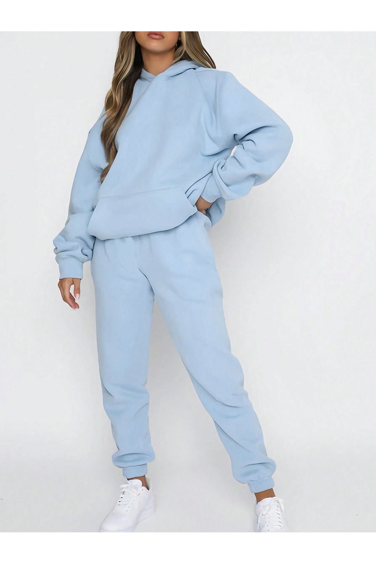 Basic Düz Eşofman Takımı Sweatshirt Jogger - Siyah Oversize Şardonlu Kapüşonlu