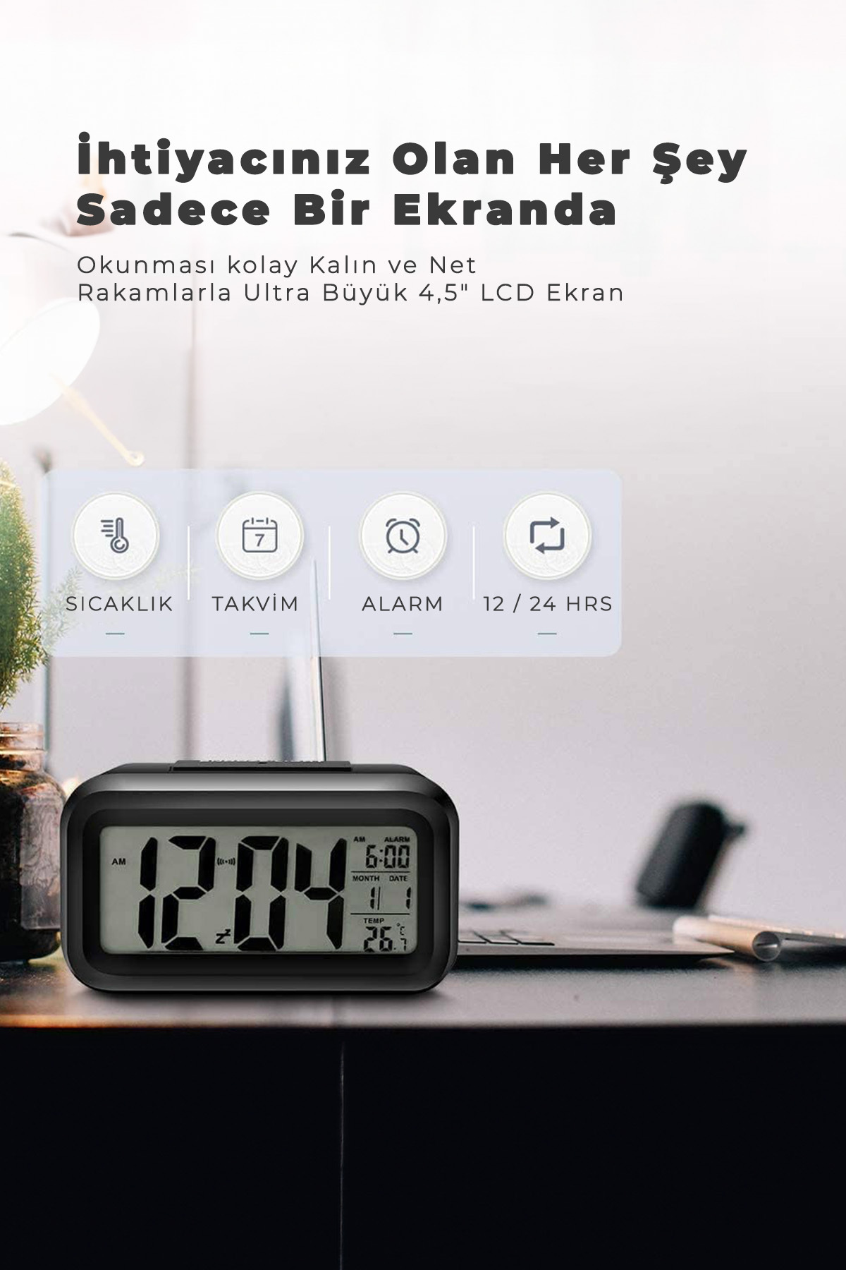 - Dijital zaman göstergesi ile modern ve şık bir görünüm sağlar