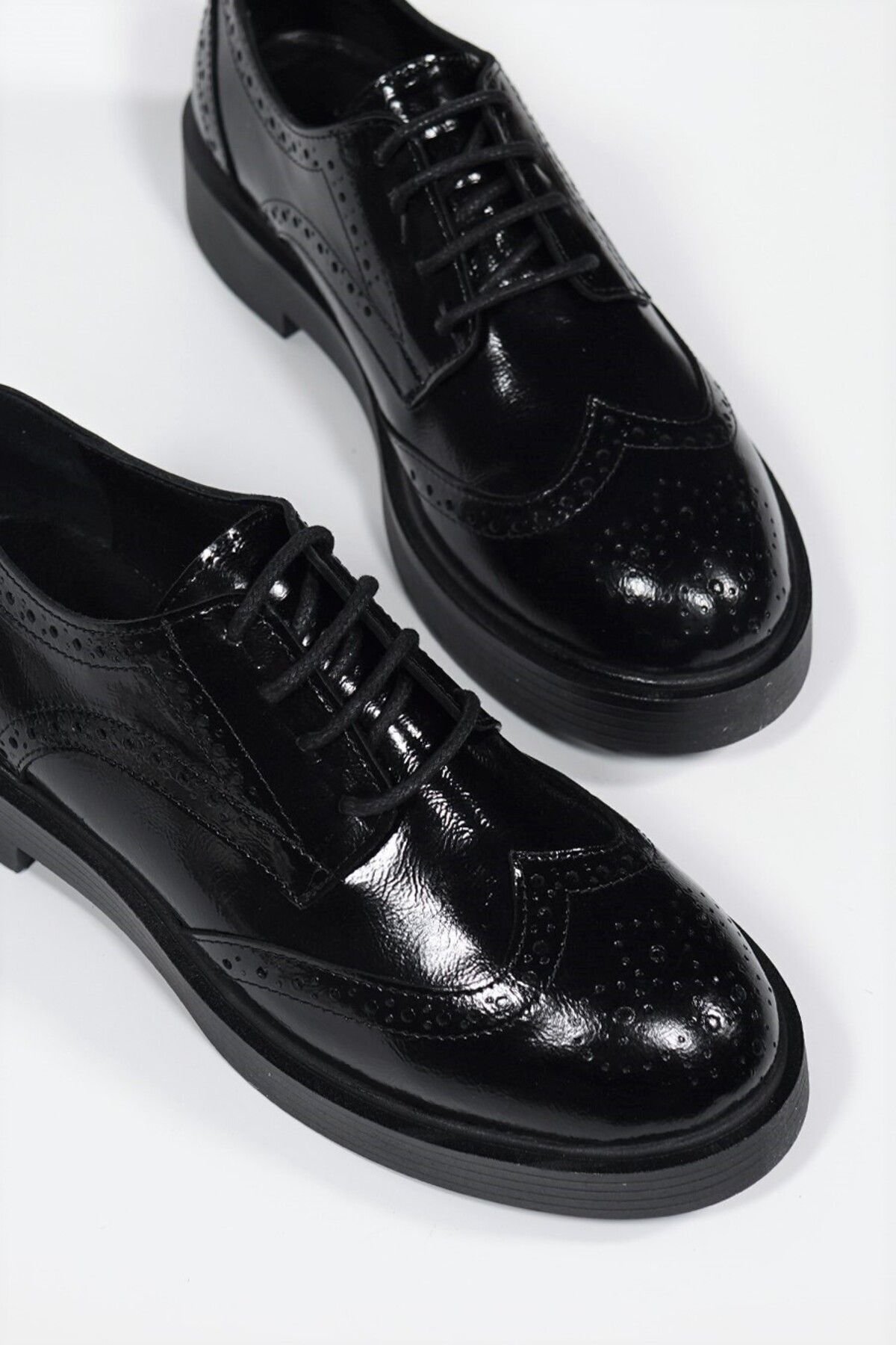 Design koleksiyonuna özel tasarımıyla, şıklığınızı tamamlayacak siyah rugan hakiki deri oxford ayakkabı